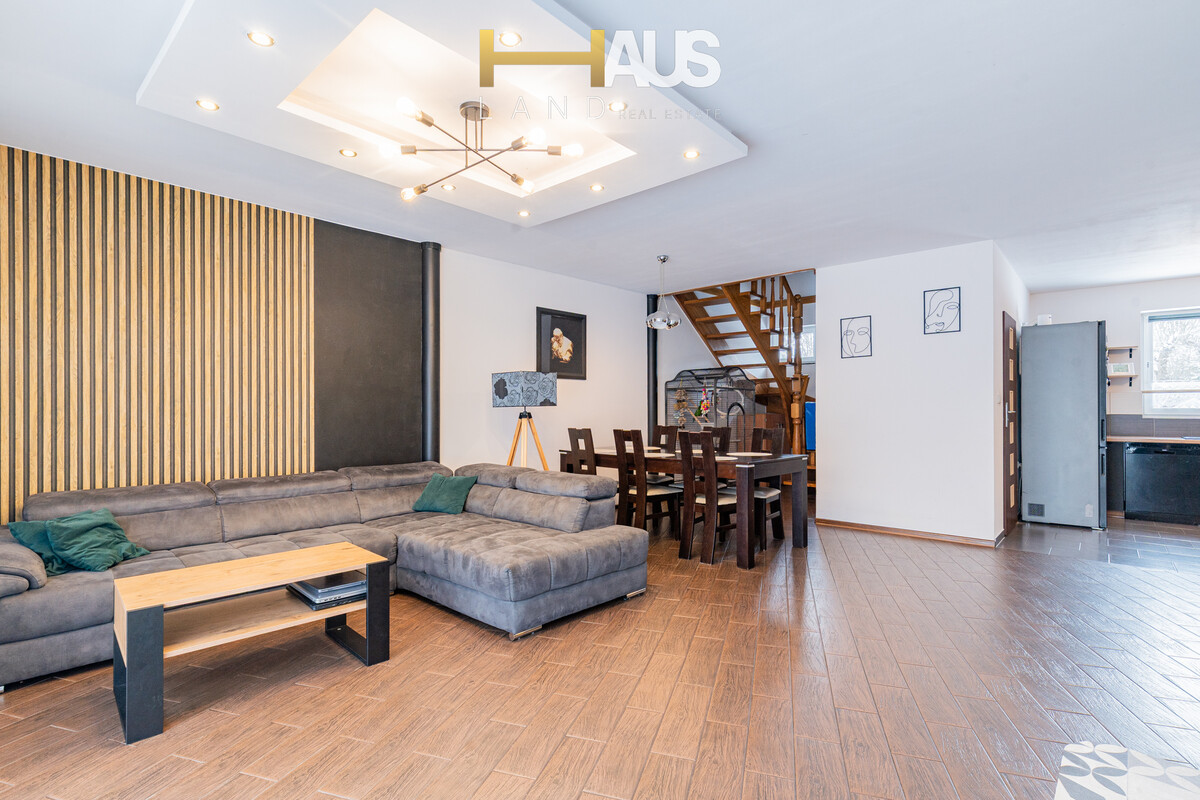 Budynek oferuje imponującą powierzchnię całkowitą około 300 m², z czego 210 m² stanowi powierzchnia użytkowa. Wnętrza domu są niezwykle jasne, nowoczesne i bardzo funkcjonalne, a ich układ sprawdzi się zarówno dla dużej rodziny, jak i dla osób łączących funkcję mieszkalną z pracą zdalną.
