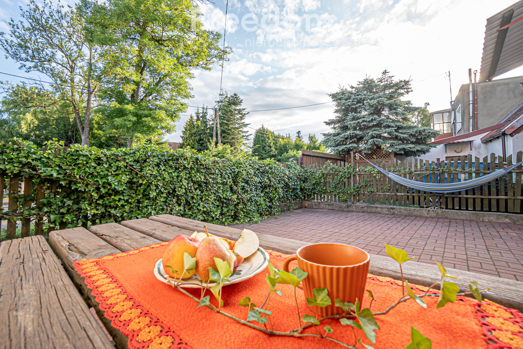 Dom wolnostojący o powierzchni całkowitej ok. 100 m² (użytkowa 84,50 m²), posadowiony jest na zadbanej działce o powierzchni 702 m², w kształcie prostokąta. Teren ogrodzony (ogrodzenie stalowo-betonowe), zagospodarowany, z licznymi nasadzeniami. Dodatkowym atutem jest murowany budynek gospodarczy, który może pełnić funkcję składziku lub zostać zaadaptowany na cele rekreacyjne.