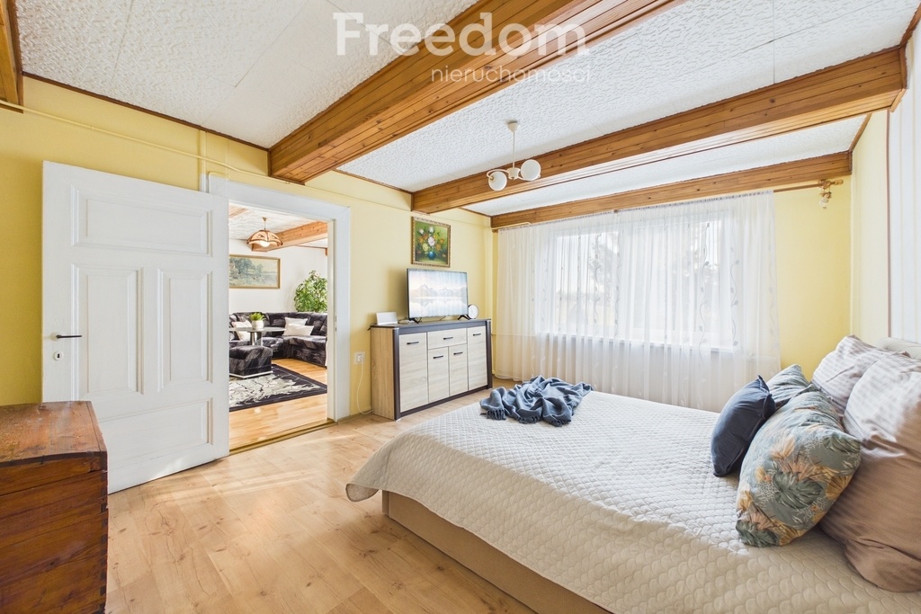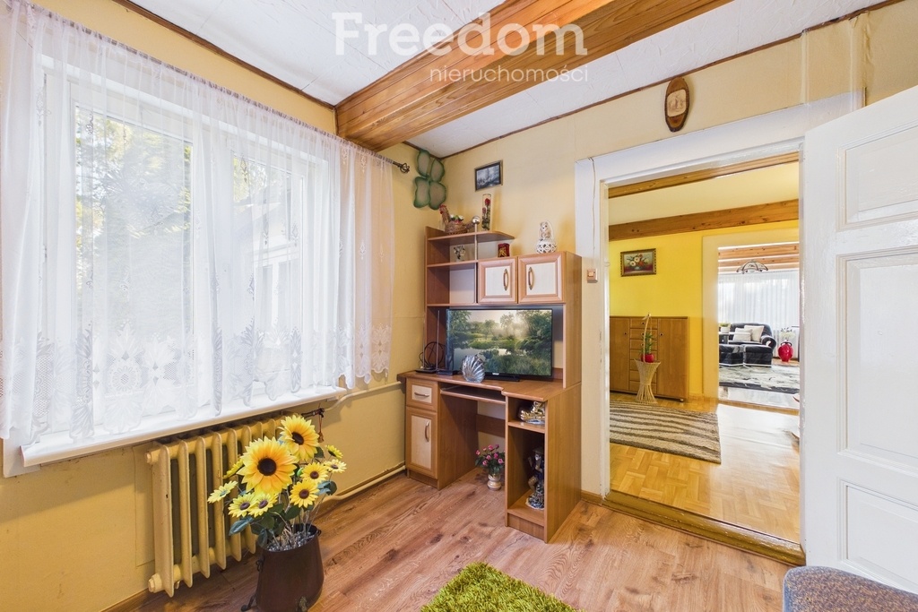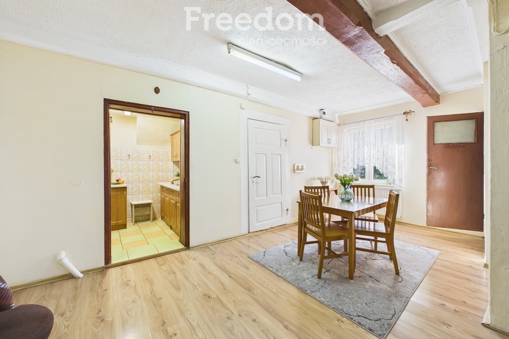 Budynek o powierzchni użytkowej ok. 120 m² składa się z 4 pokoi, oddzielnej kuchni, jadalni, łazienki z wanną, pomieszczenia gospodarczego oraz werandy. Dodatkowo do dyspozycji jest piwnica (ok. 34,6 m²) oraz przestronny, dwukondygnacyjny strych (pierwsza kondygnacja ok. 98 m²), który daje duże możliwości adaptacyjne.