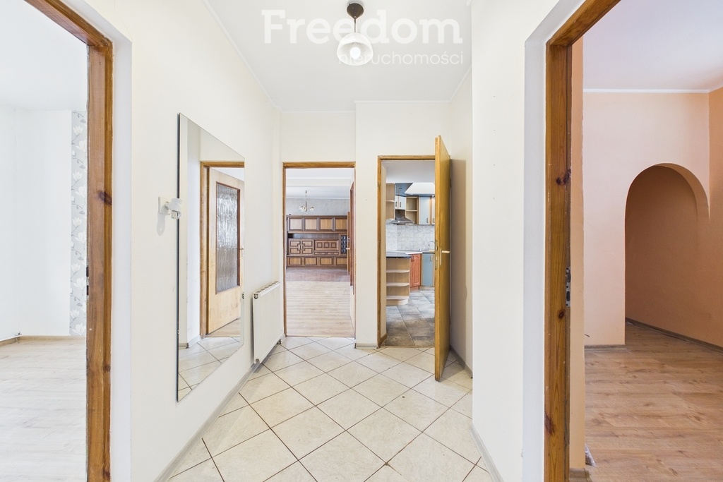 Dom podłączony jest do miejskiej sieci wodociągowej oraz kanalizacyjnej. Budynek wymaga odświeżenia, co daje możliwość aranżacji wnętrza zgodnie z własnymi potrzebami i preferencjami.