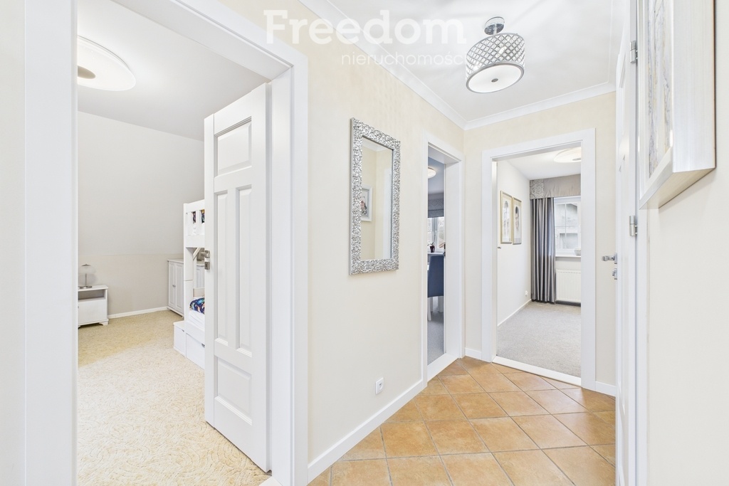 Spacious house for rent – Elbląg, Nałkowska Street. Ideal for a family or those who value comfort, peace, and a great location. We invite you to rent this comfortable and well-equipped single-family home located in a quiet residential area in Elbląg. This place combines peace and privacy with proximity to all amenities. Bus and tram stops, shops, and popular cycling routes are just a few minutes' walk away. Advantages of the property Functional layout of the rooms – comfort on every level Basement: - Boiler room - Practical pantry - Toilet Ground floor – the heart of the house: - Bright living room with a fireplace, a set of leather furniture, a table with chairs and chests of drawers - Separate kitchen with a window – fully equipped with household appliances (fridge, electric oven, gas hob, microwave, coffee maker), wooden built-in cabinets - TV room with a large TV, sofa and armchairs - Spacious hall with built-in furniture - Toilet First floor: - Bedroom with a comfortable double bed - Office equipped with a desk and cabinets for documents - Large wardrobe - Spacious bathroom with a bathtub, shower and two sinks Second floor – ideal for children, guests or as a work space: - Two large, modern rooms with beds and wardrobes - Bathroom with a bathtub and toilet The house is heated by a dual-function gas boiler, in selected rooms there is There's underfloor heating, and hot water comes from a gas system. Large windows provide plenty of natural light and beautiful views of the garden. The plot will accommodate several cars, and privacy is guaranteed by growing thuja trees. The street is peaceful and quiet, making it an ideal place for a family who values comfort, space, and contact with nature. Rental costs: Rent: PLN 10,000 Administrative fees: according to consumption Electricity: according to consumption Security deposit: PLN 20,000 Required: occasional lease agreement and tenant liability insurance. A one-time real estate agency fee applies to the rental. Interested? Call and schedule a viewing – this is a home that will provide you with comfort, space, and exceptional living comfort. Katarzyna Szar, Your real estate advisor. I also invite you to our office at al. Grunwaldzka 31 in Elbląg.