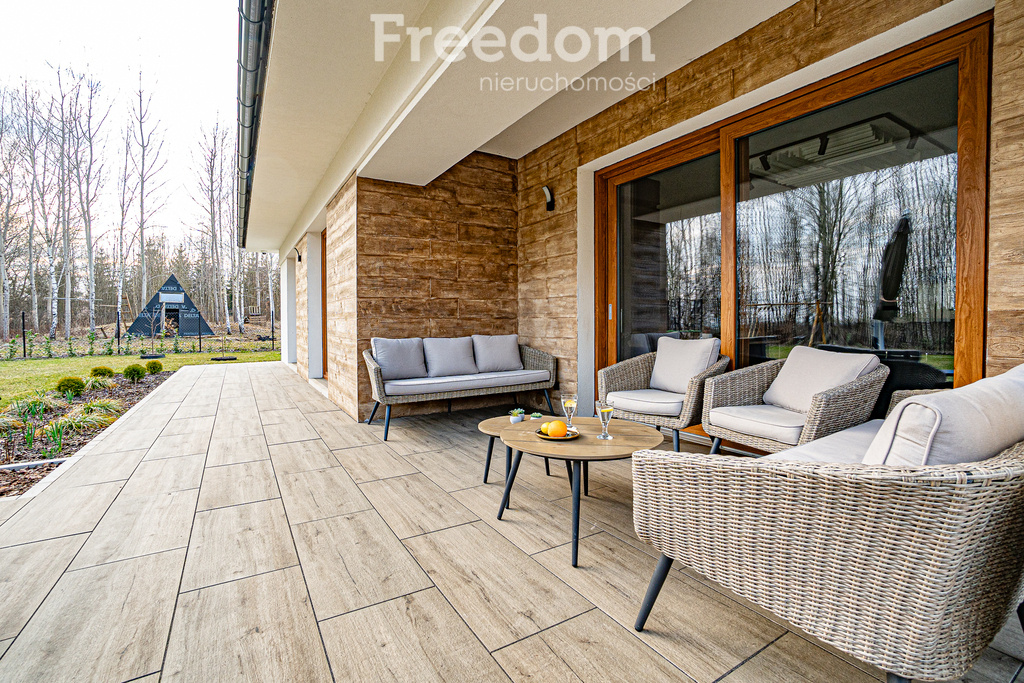 Luxurious single-story house for rent – peace, comfort, and modernity surrounded by nature. Looking for a place that provides complete privacy, ultimate comfort, and no worries about utility bills? This modern single-story house, located right next to the forest, is the perfect space for those who want to combine luxury with nature and the convenience of everyday life. Key benefits: Complete privacy and peace. The house is located directly by the forest – no city noise, maximum relaxation. Comfort at the highest level. 133 m² of functional space: 3 bedrooms, a walk-in closet, a private bathroom, a spacious living room with a fireplace, a fully equipped premium kitchen, a laundry room, and a two-car garage. Luxurious relaxation every day. A large terrace, a jacuzzi, and a beautiful garden fully serviced by a gardener and a robotic lawnmower – effortlessly. Low operating costs. Underfloor heating with photovoltaics, heat recovery, and air conditioning – savings and an ideal climate year-round. A home that works for you. Monitoring, video intercom, automatic systems, biological treatment plant, water filtration, and water softening – complete comfort and safety. All utilities included. Electricity, water, internet, TV, garbage disposal, garden maintenance, air conditioning, and heat recovery – one fixed cost with no surprises. Lease Terms: Lease Price: PLN 10,000 + PLN 2,000 per month (all utilities and amenities included). Security Deposit: PLN 24,000. Lease Term: Minimum one year, occasional or business lease. One-time real estate agency fee. If you're looking for a place where everyday life becomes luxury – this house will meet all your expectations. Call me, I'll provide details, and arrange a viewing. Katarzyna Szar. I also invite you to visit our office in Elbląg, at Aleja Grunwaldzka 31.