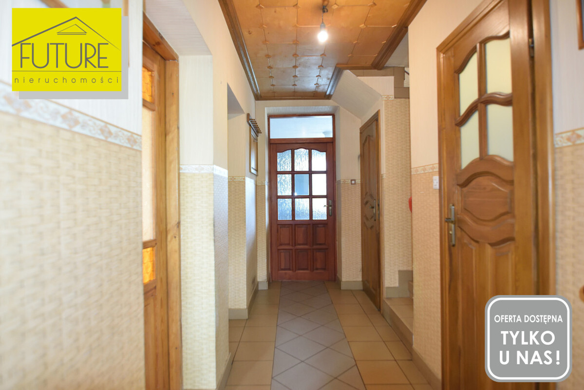 Piwnica: garaż, kotłownia (piec na palet z podajnikiem i bojlerem), kuchnia letnia, dwa pokoje, a także osobne mieszkanie dla letników z łazienką i kuchnią oraz możliwością adaptacji dodatkowego przyległego pomieszczenia pod wynajem dla turystów.