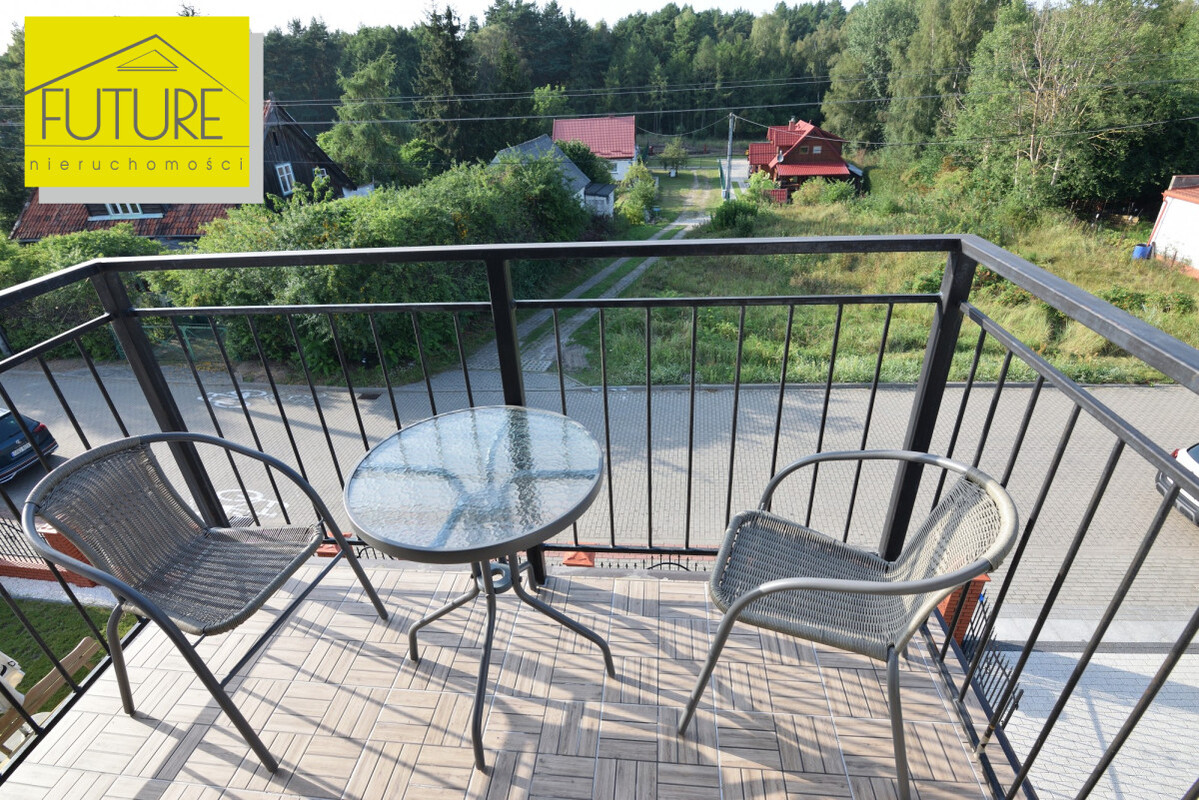 Na pierwszym piętrze są 2 pokoje z łazienkami, każdy pokój ma balkon. Pokoje są przystosowane pod wynajem, 1 mieszkanie dwu pokojowe z łazienką i kuchnią pow.35m2 z pełnym umeblowaniem i wyposażeniem.