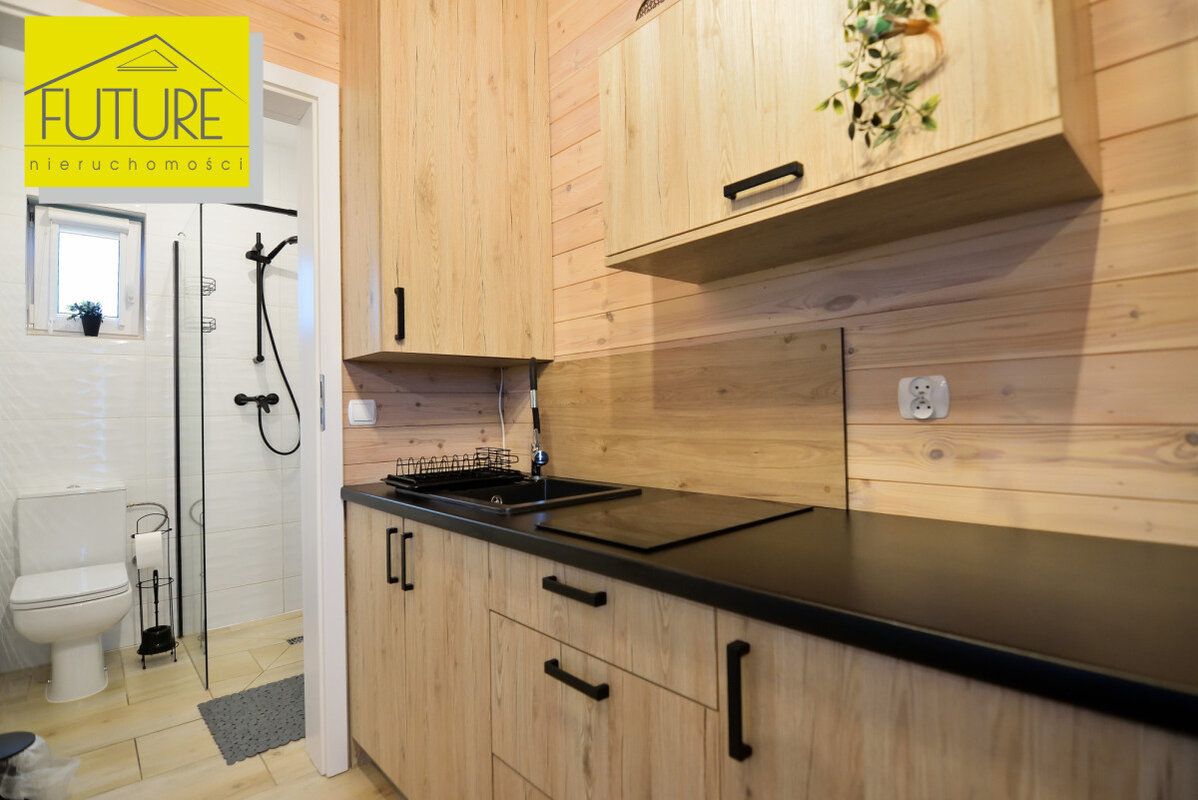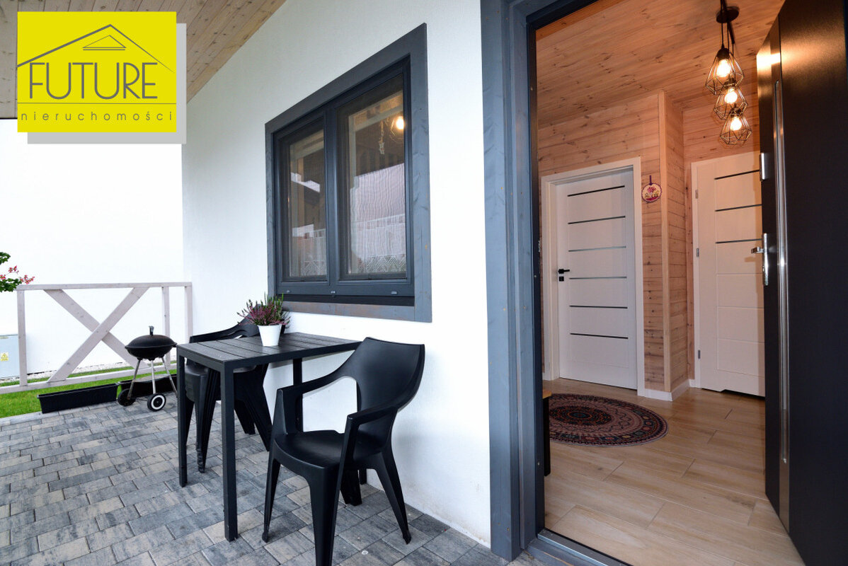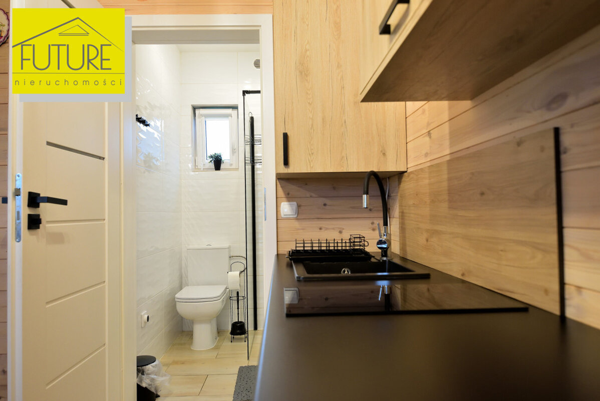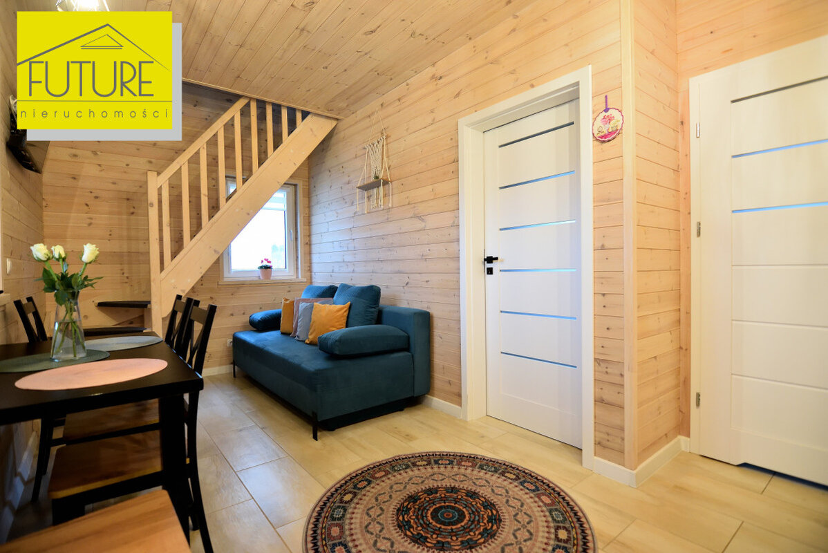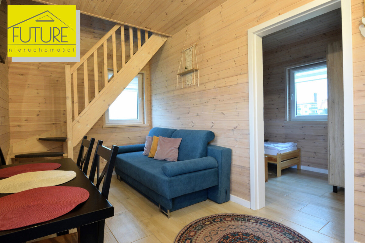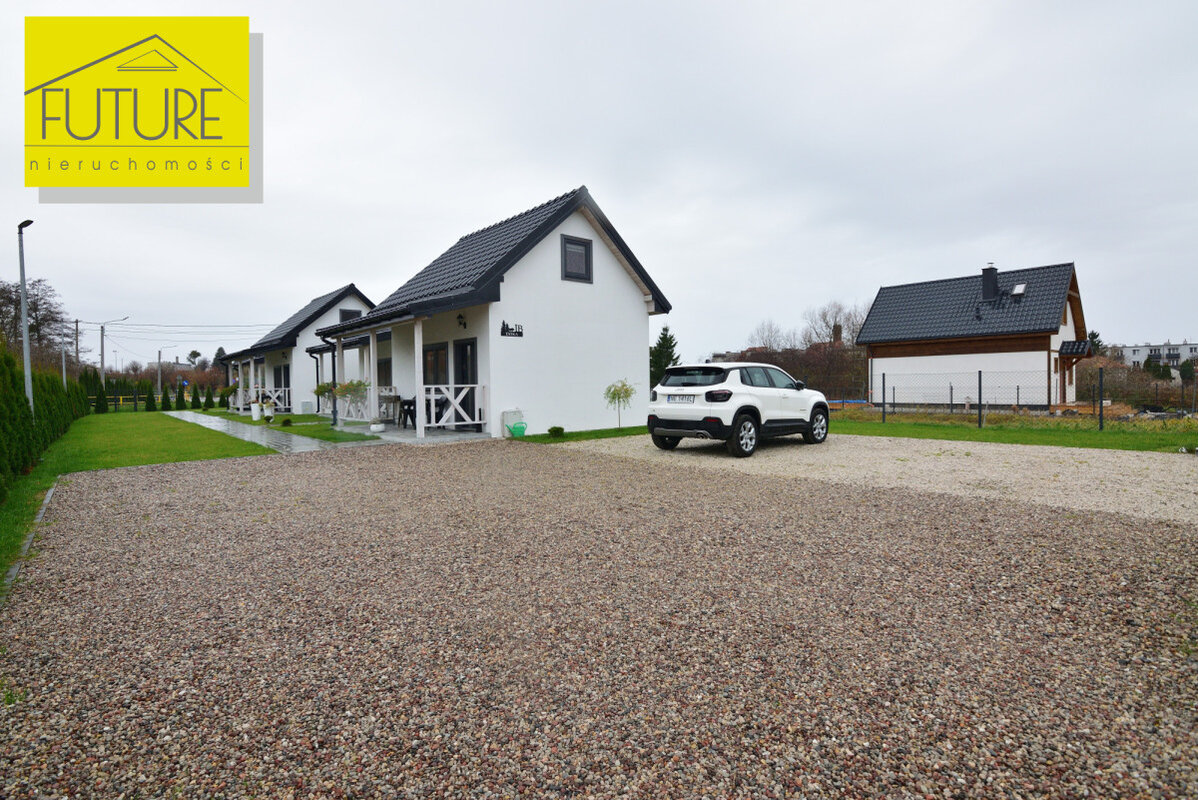 Domki z 2023 roku, każdy o powierzchni użytkowej 30,56 m² ( po podłodze 47,6 m²) i tarasu o powierzchni 9,9 m².