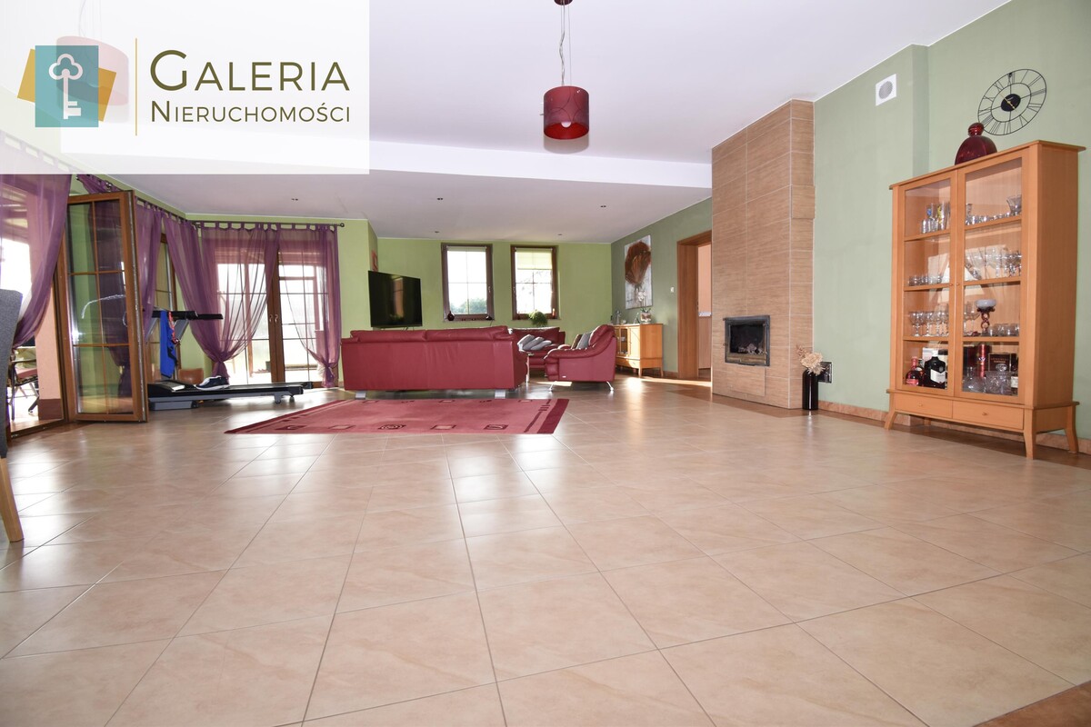 - przestronny salon z kominkiem i wyjściem do ogrodu zimowego (35,37 m²)