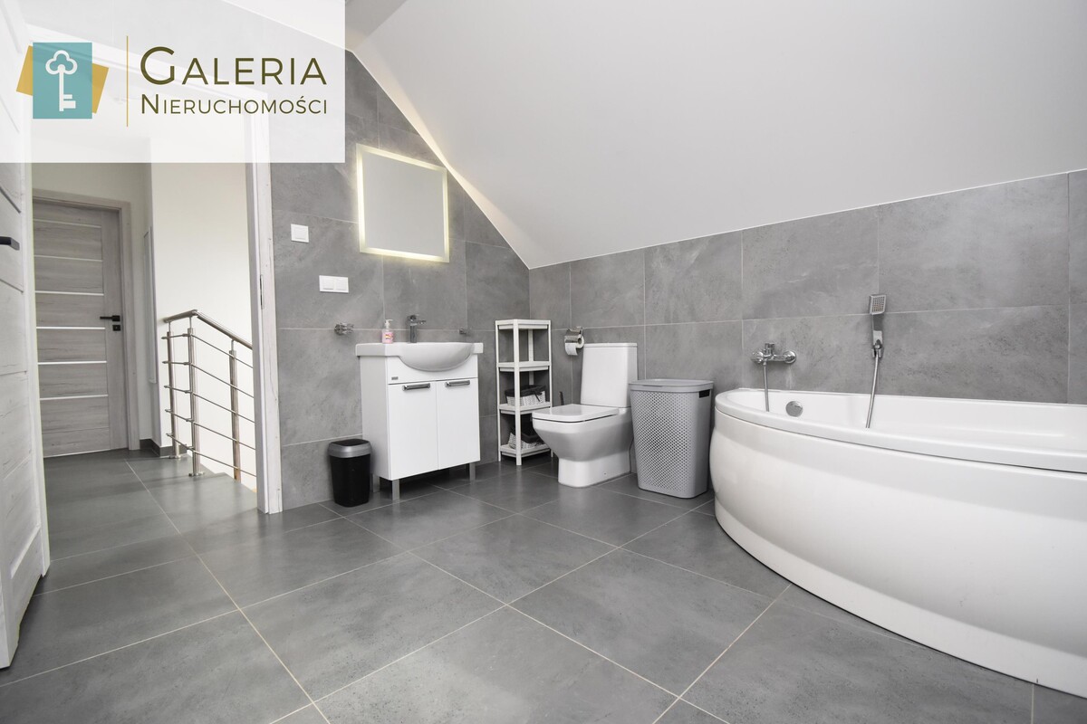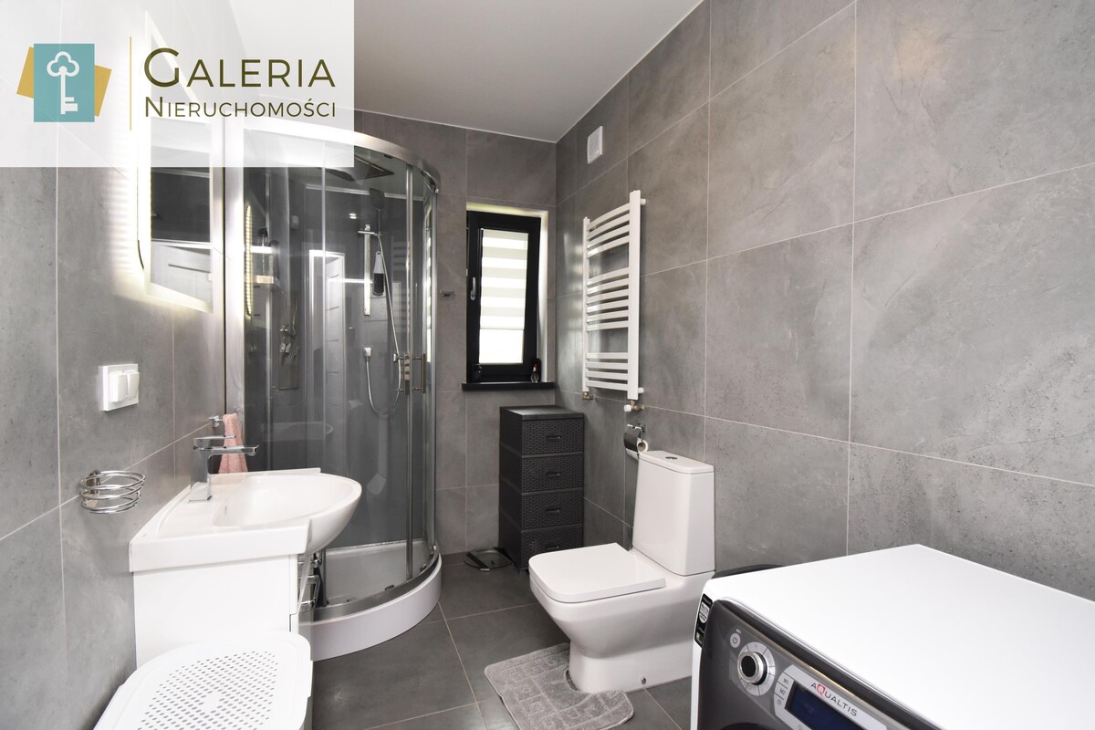 Na tej kondygnacji znajduje się jeszcze łazienka z WC i prysznicem, przedpokój oraz pomieszczenie, które pełni obecnie funkcje biura.