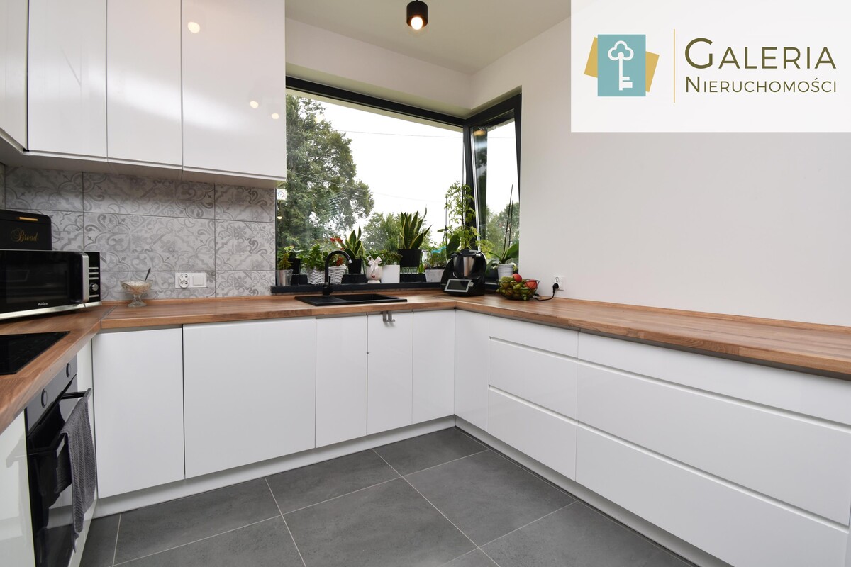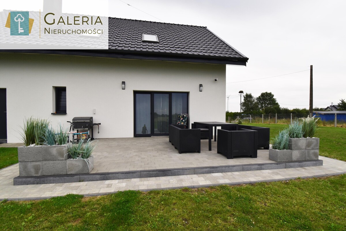 Dom został zaprojektowany w nowoczesnych kolorach, dzięki czemu jest ładny i ponadczasowy. Dodatkowo został umeblowany i nadaje się od razu do zamieszkania.