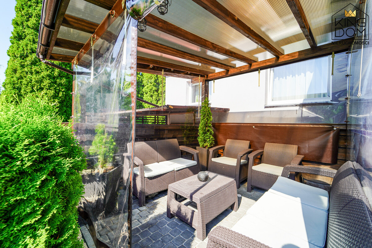 Budynek jednorodzinny z 1973 roku, wolnostojący, został w międzyczasie przebudowany i unowocześniony, ocieplony styropianem o grubości 10 cm, wyposażony w nowoczesne trzyszybowe okna na parterze, a około osiem lat temu przeszedł remont dachu. W grudniu 2020 roku na dachu zamontowano instalację fotowoltaiczną, działającą na korzystnych zasadach, co znacząco obniża koszty eksploatacji. Dodatkowym atutem jest pompa głębinowa, przydatna do podlewania ogrodu i utrzymania jego bujnej roślinności.