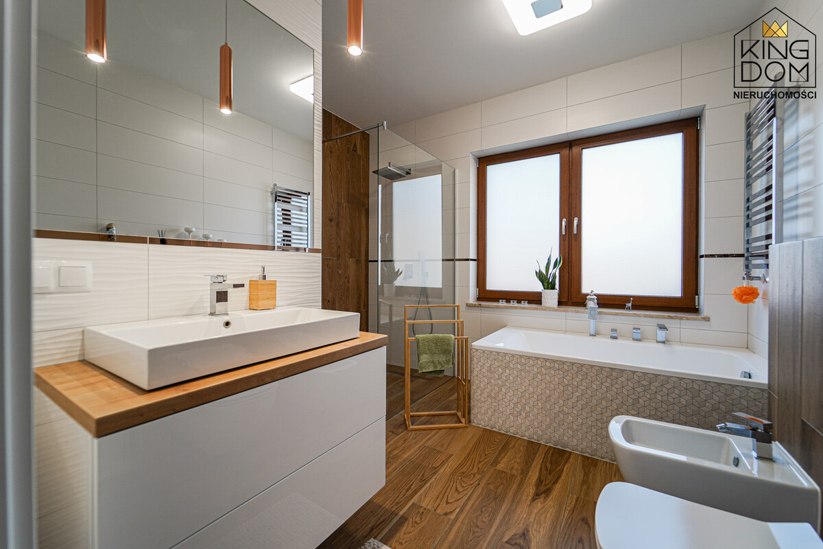 - komfortowa łazienka z kabiną prysznicową typu walk-in, wanną, wc oraz bidetem,