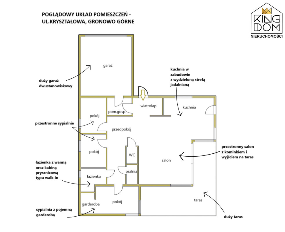- przestronny salon z kominkiem i wyjściem na duży, słoneczny taras,