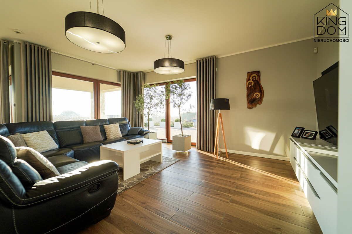 Kingdom Nieruchomości z przyjemnością przedstawia na sprzedaż nowoczesny dom wolnostojący – idealne połączenie komfortu, stylu i kontaktu z naturą, zlokalizowany na starannie zaprojektowanej działce w Gronowie Górnym. Dzięki usytuowaniu na lekkim wzniesieniu z tarasu roztacza się malowniczy widok na otaczającą zieleń.