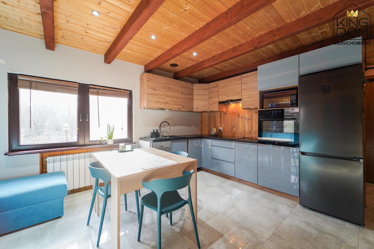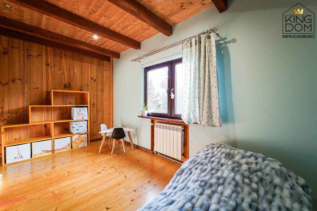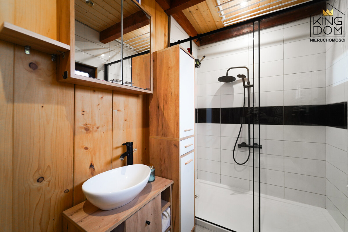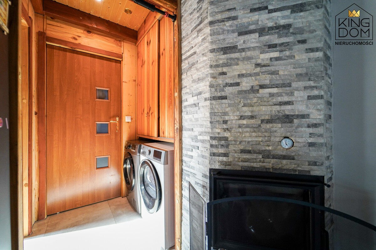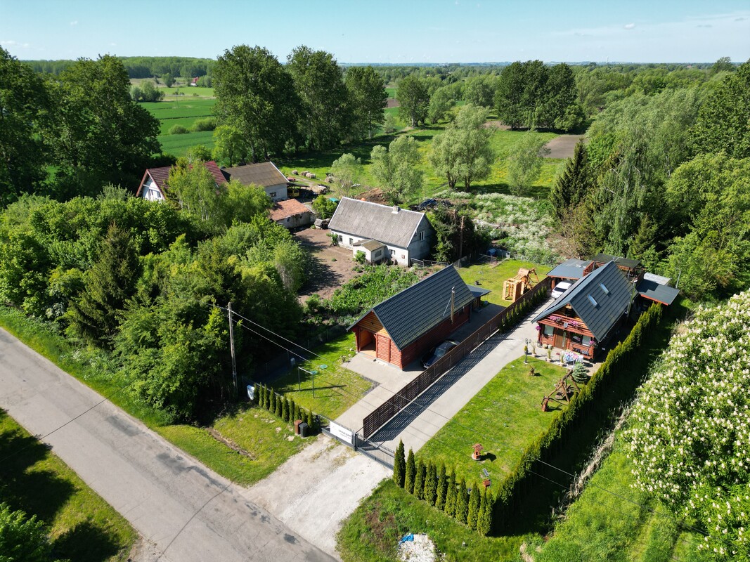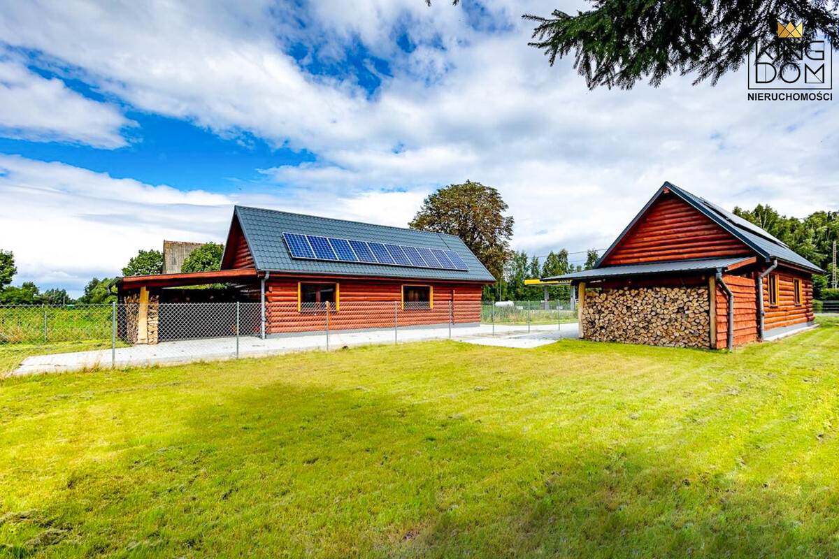 Budynek mieszkalny wybudowany w 2022 roku, został starannie wykonany z bali drewnianych, a jego konstrukcja została dodatkowo ocieplona wysokiej jakości wełną mineralną. Dach o konstrukcji dwuspadowej pokryto blacho dachówką, co zapewnia trwałość oraz estetyczny wygląd.