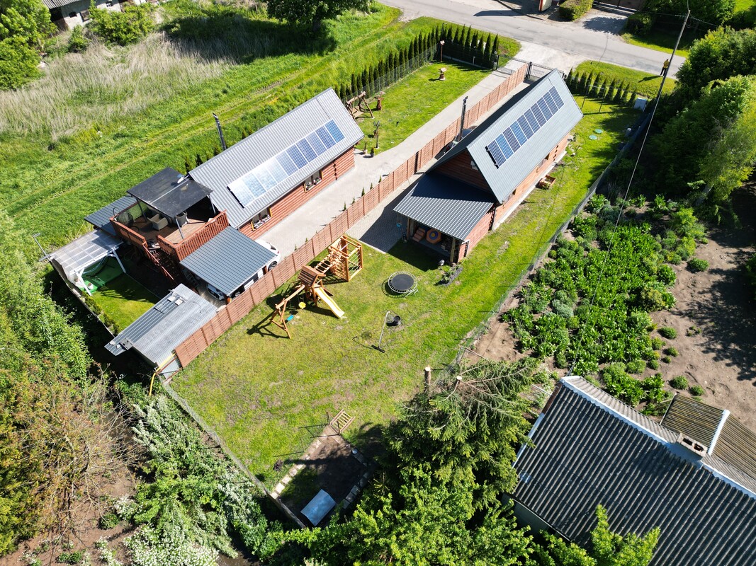 Na dachu zostały zamontowane panele fotowoltaiczne, które zapewniają ekologiczną energię, znacząco obniżając koszty eksploatacji nieruchomości, dodatkowo nowy nabywca ma możliwość przejąć umowę z fotowoltaiką na korzystnych zasadach.