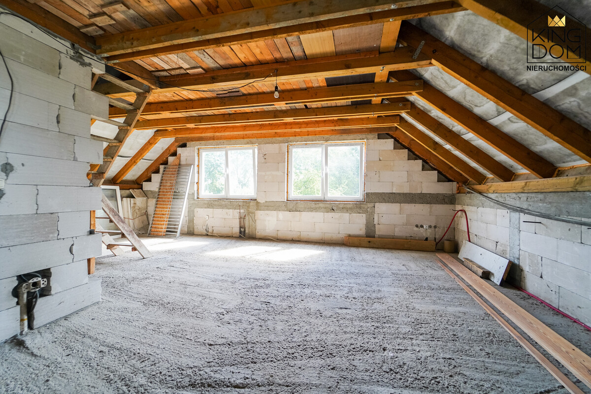 Istnieje możliwość adaptacji poddasza, co umożliwi rozszerzenie przestrzeni mieszkalnej i wydzielenie dodatkowych pomieszczeń. Co istotne, na II kondygnację zostały już wyprowadzone piony wodno-kanalizacyjne, co znacząco ułatwi ewentualne prace adaptacyjne i pozwala na swobodne zaplanowanie łazienki lub aneksu kuchennego.