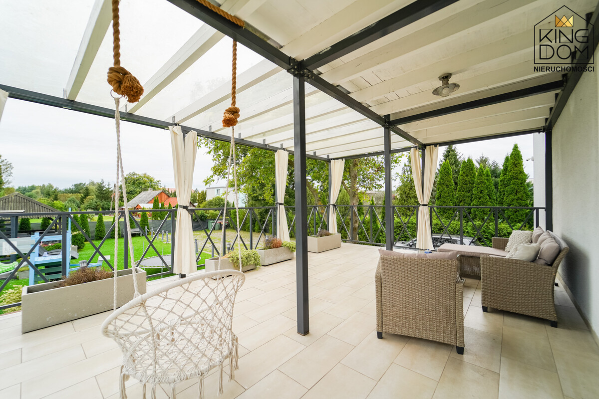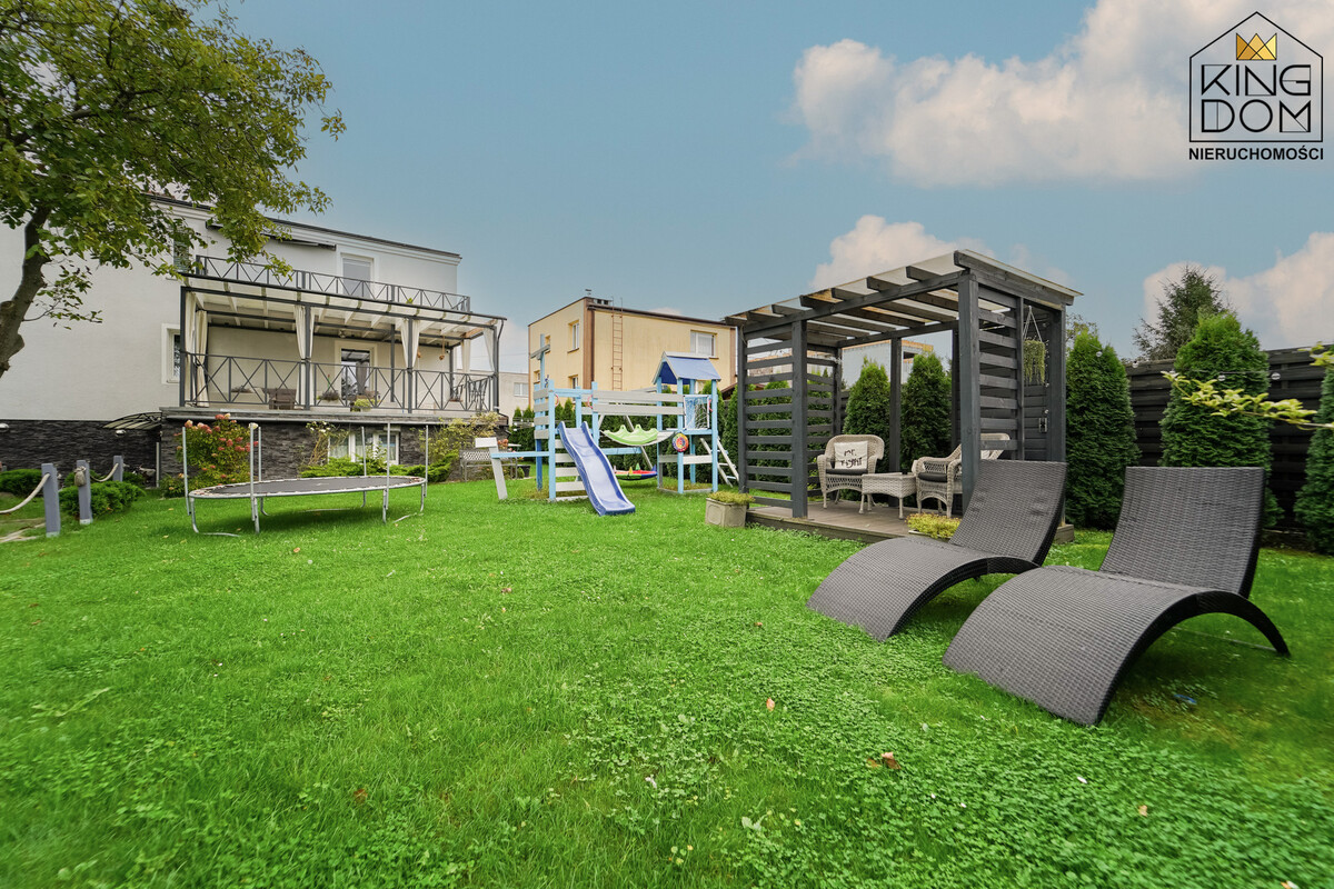 Na terenie ogrodu znajdują się dwie wiaty, stanowiące idealne miejsce wypoczynku oraz mini plac zabaw dla dzieci z trampoliną i domkiem ze zjeżdżalnią.