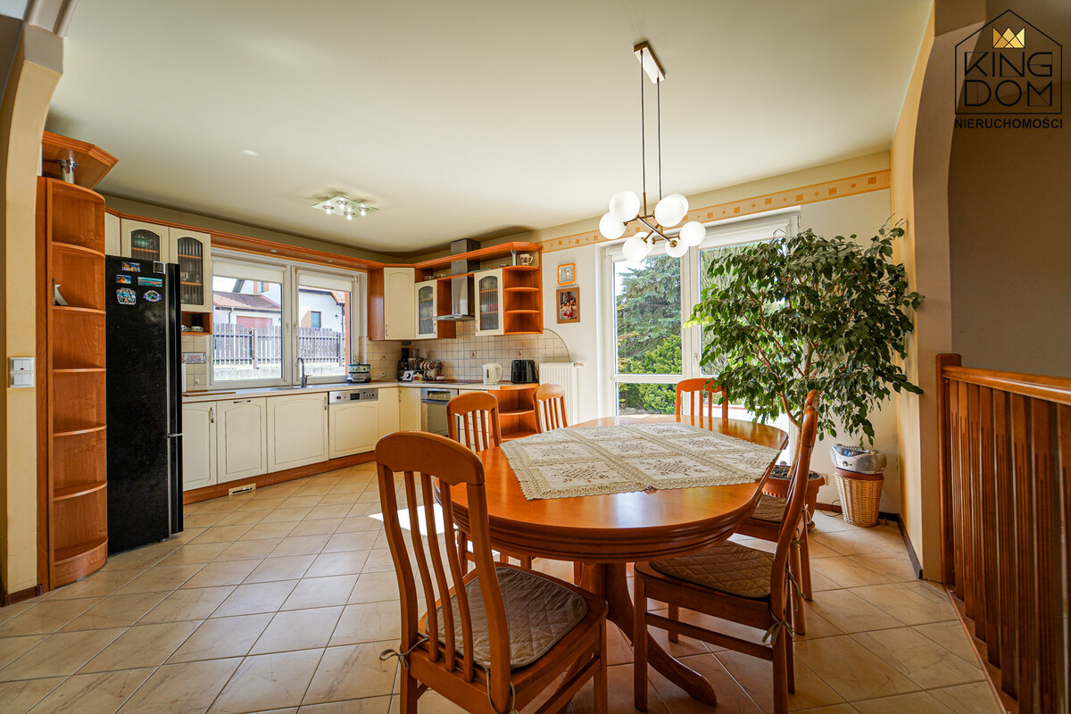 KINGDOM Nieruchomości prezentuje na sprzedaż nietuzinkowy wolnostojący dom z garażem, posadowiony na ładnie zagospodarowanej działce. To indywidualnie zaprojektowana przestrzeń, która oferuje coś więcej niż tylko dach nad głową, to przemyślany układ wnętrz stworzony dla maksymalnej swobody domowników.