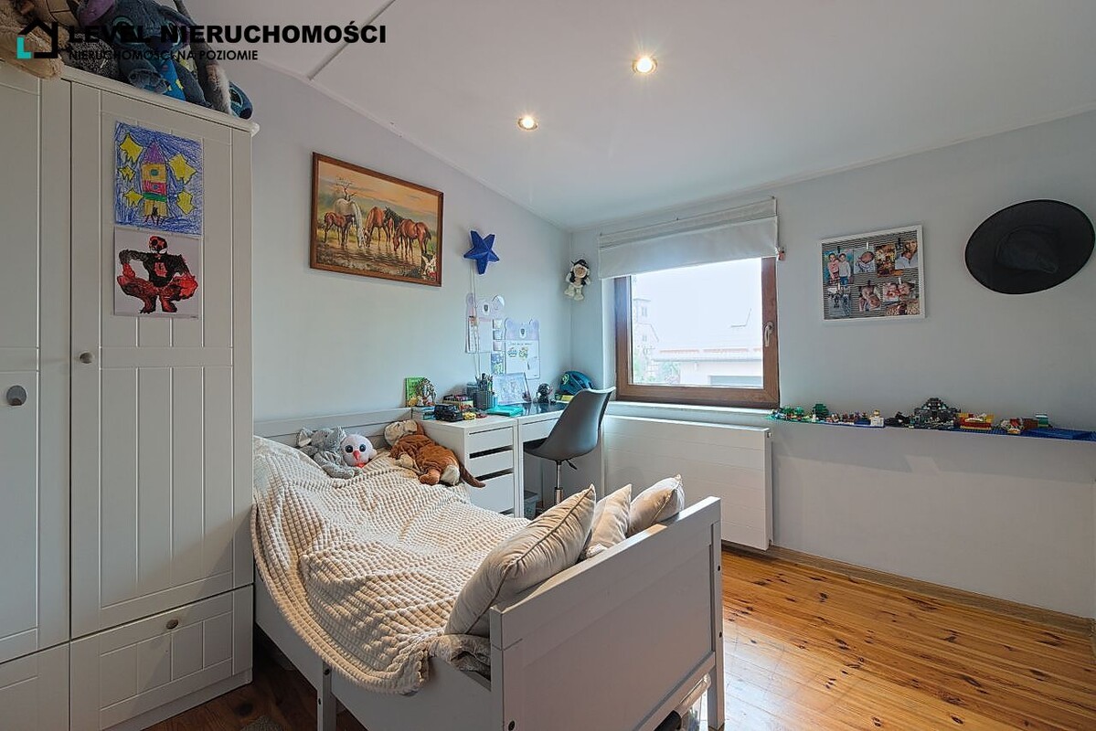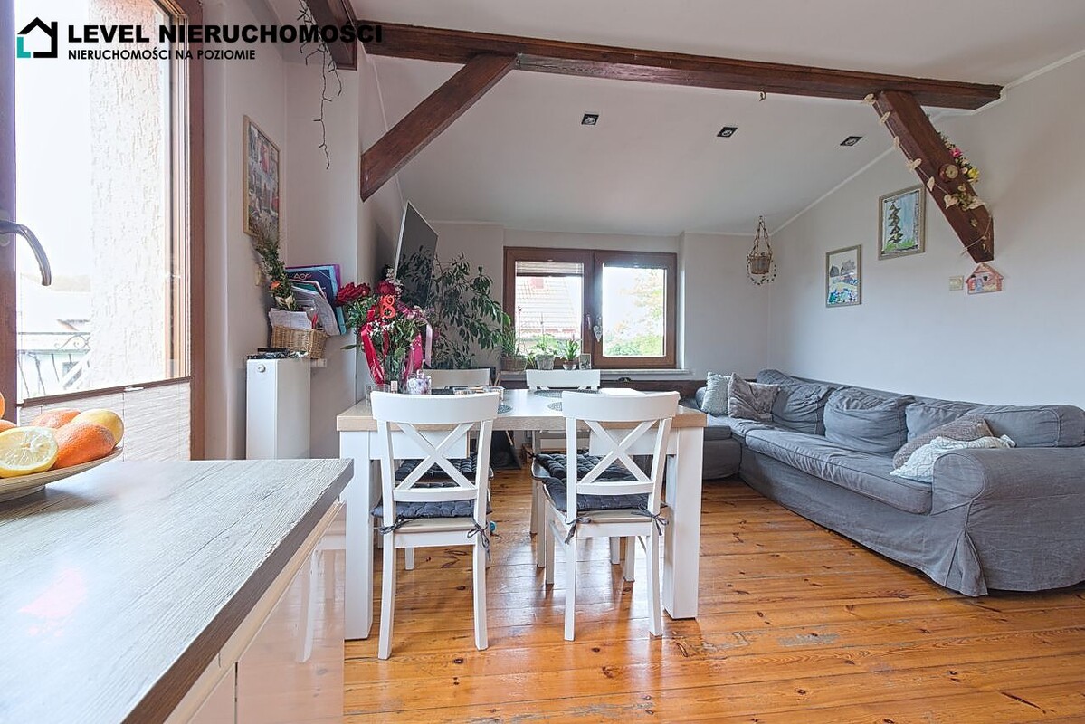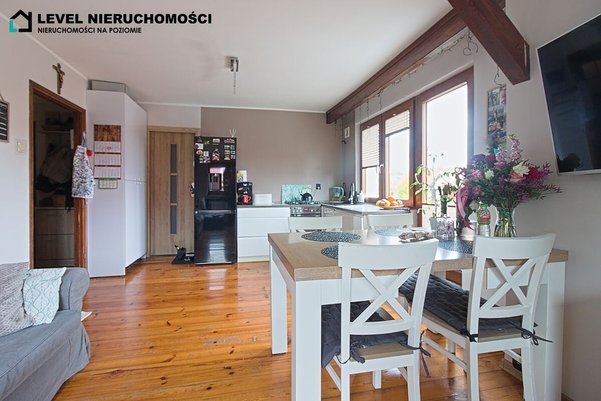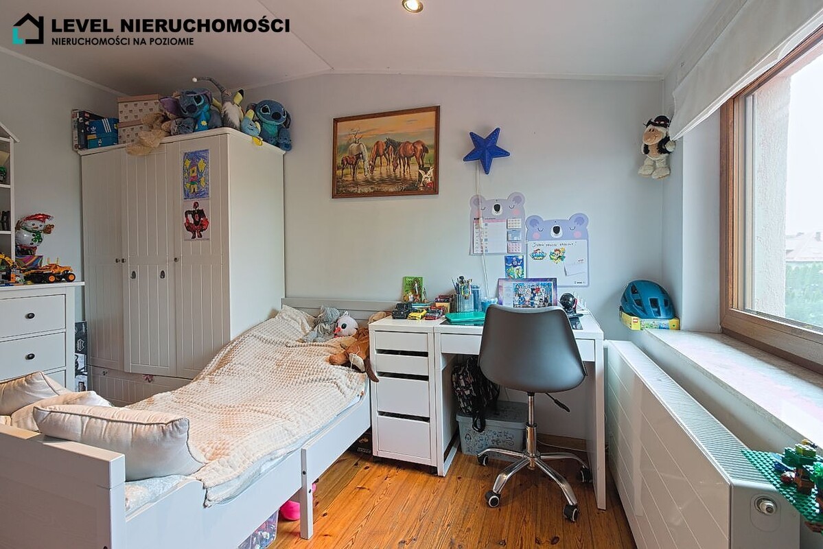 Dom mieszkalny z możliwością podziału na dwa indywidualne mieszkania (dwa osobne wejścia). Parter do remontu oraz własnej aranżacji składa się z salonu z jadalnią oraz aneksu kuchennego, dwóch sypialni, łazienki, zabudowanej werandy oraz przedpokoju. Piętro składa się z salonu z aneksem kuchennym z wyjściem na duży taras, trzech sypialni, łazienki, spiżarni oraz przedpokoju.