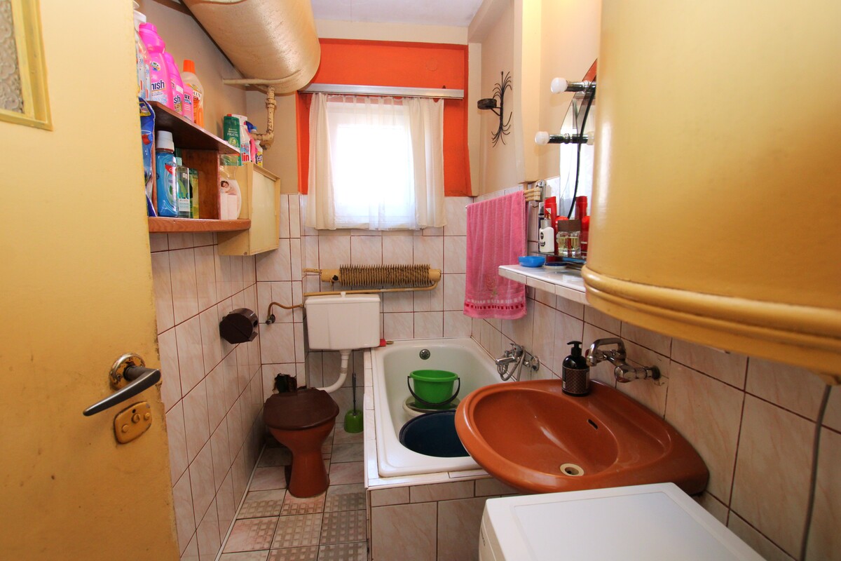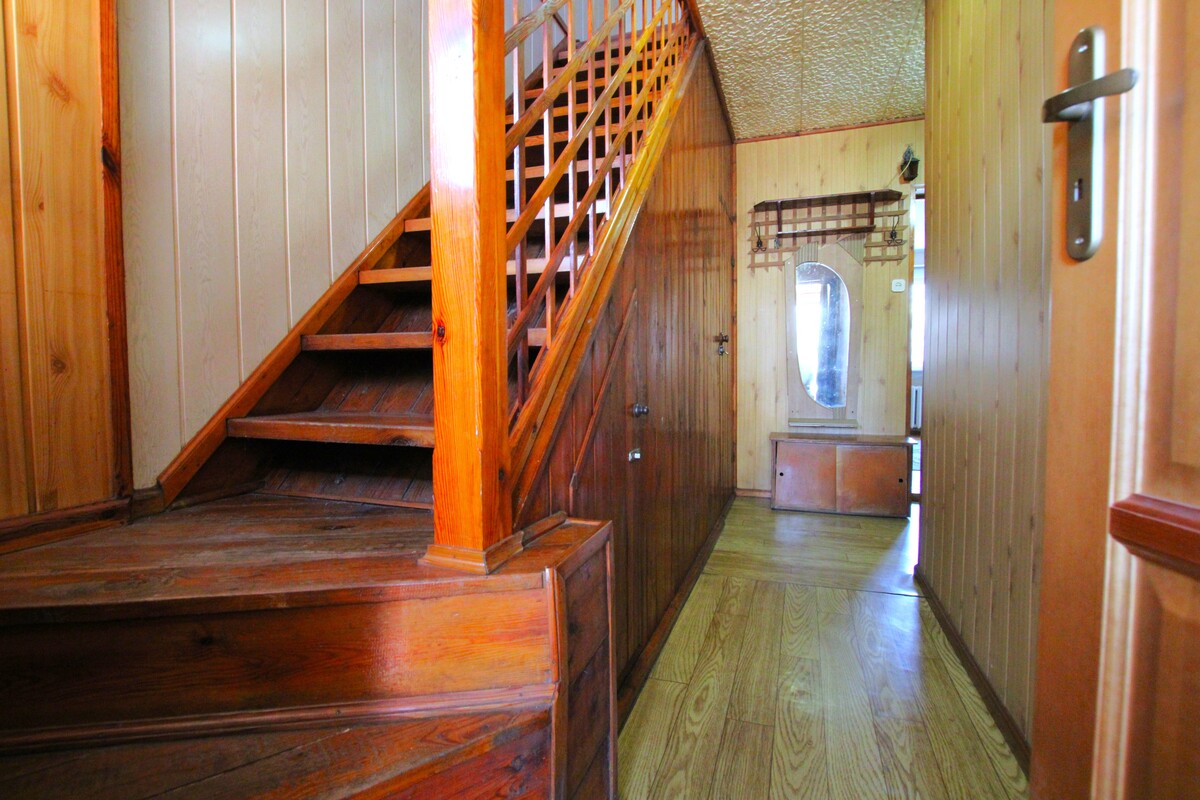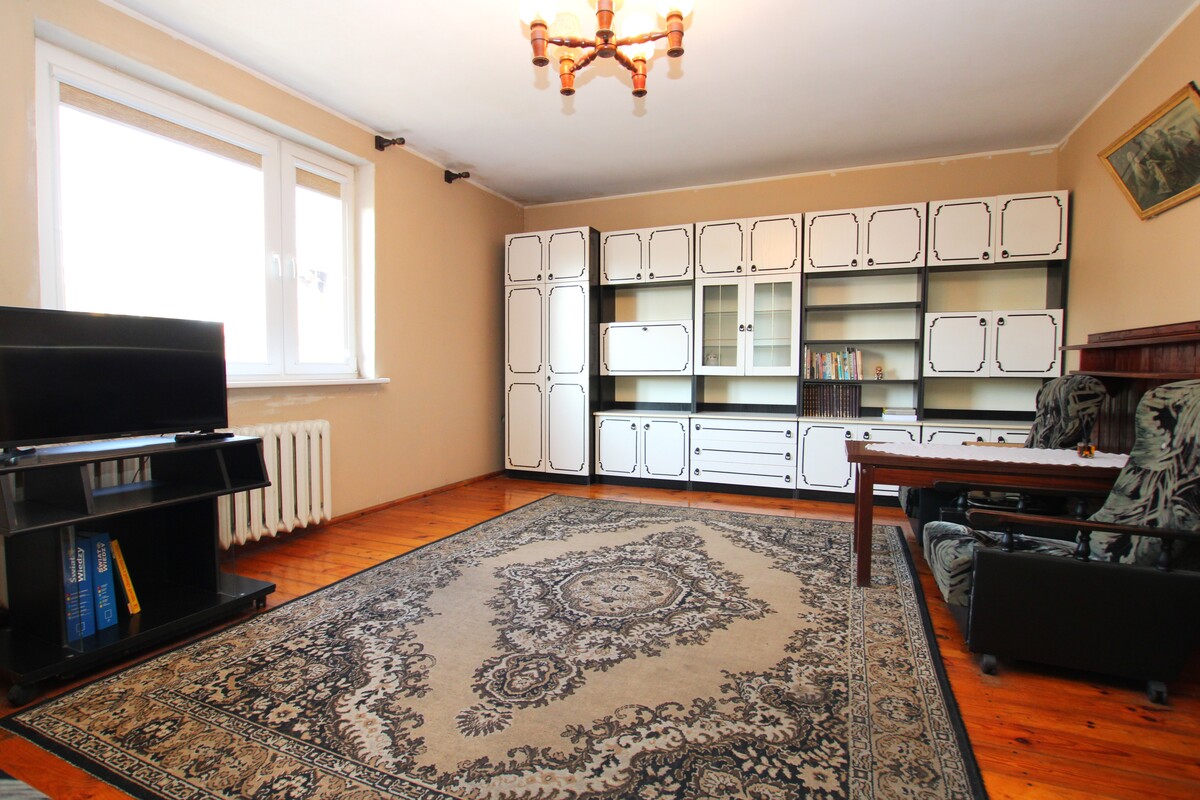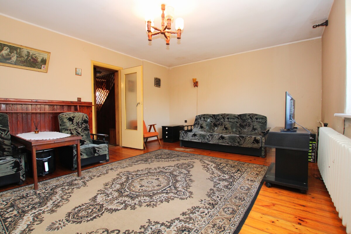 Budynek wymaga remontu. Centralne ogrzewanie etażowe węglowe, grzejniki żeliwne, ciepła woda - bojler elektryczny. Stolarka okienna PCV. Funkcjonalny rozkład pomieszczeń, pokoje są ustawne, z przedpokoju prowadzą wejścia do wszystkich pomieszczeń. Łazienka z wanną, pokryta glazurą i terakotą starszego typu, z oknem. Duża wygodna kuchnia.