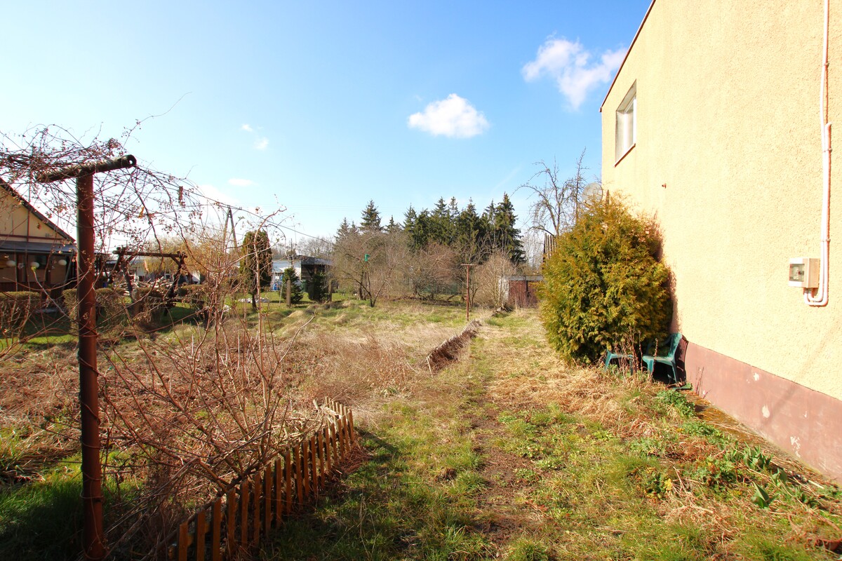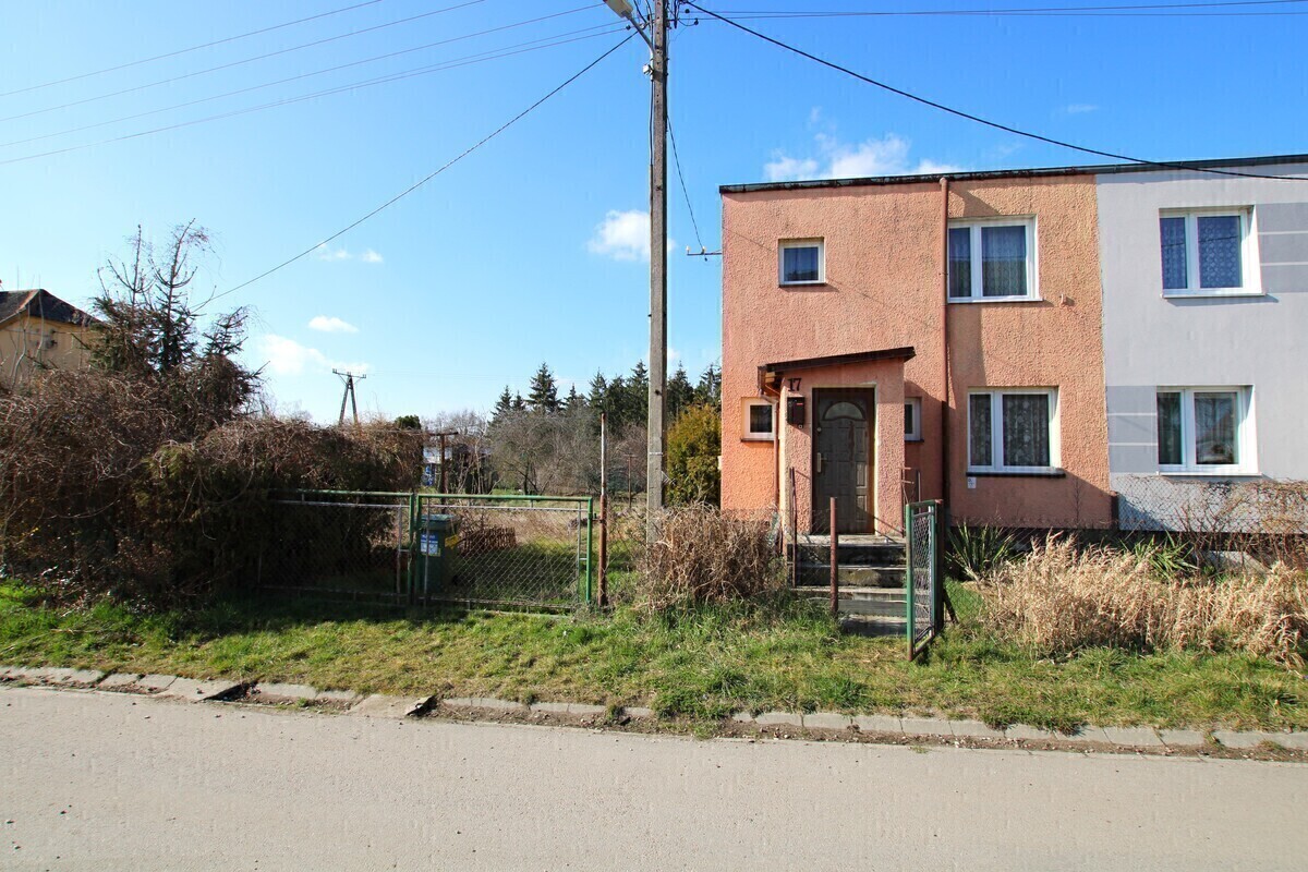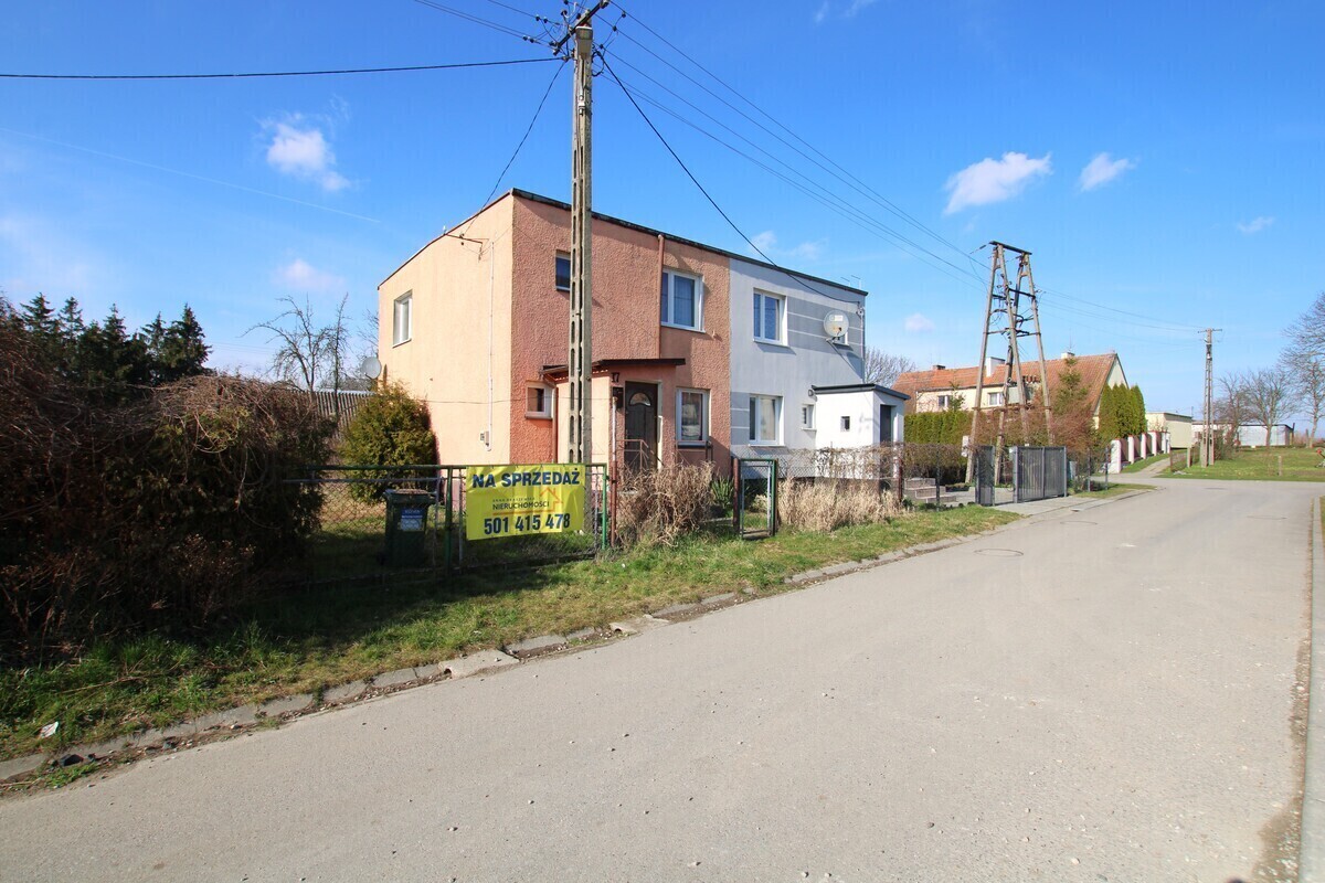 Budynek mieszkalny usytuowany jest na własnościowej działce o powierzchni 609 m2,wymagającej zagospodarowania, na której usytuowany jest również murowany garaż oraz budynek gospodarczy. Do nieruchomości przynależy dodatkowa działka ogrodnicza w pobliżu budynku o powierzchni 497 m2.Dom wybudowany został w latach 80-tych, z pustaka, ocieplony zewnętrznie styropianem, otynkowany, częściowo podpiwniczony.