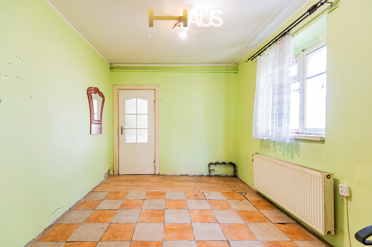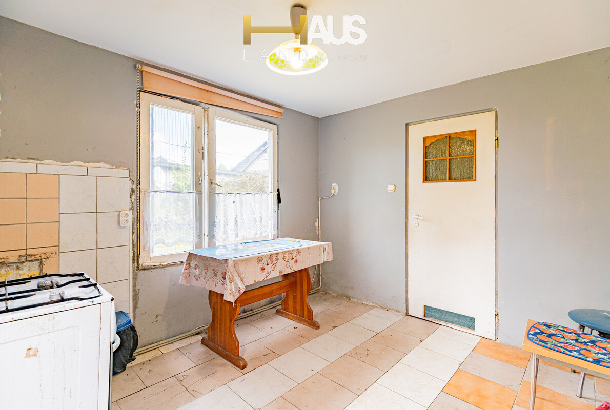 - Potencjał aranżacyjny - dom wymaga remontu, co daje przyszłemu właścicielowi pełną swobodę w kreowaniu wnętrza – od układu funkcjonalnego po styl wykończenia. Dodatkowo strych może zostać zaadaptowany na dodatkowy pokój,