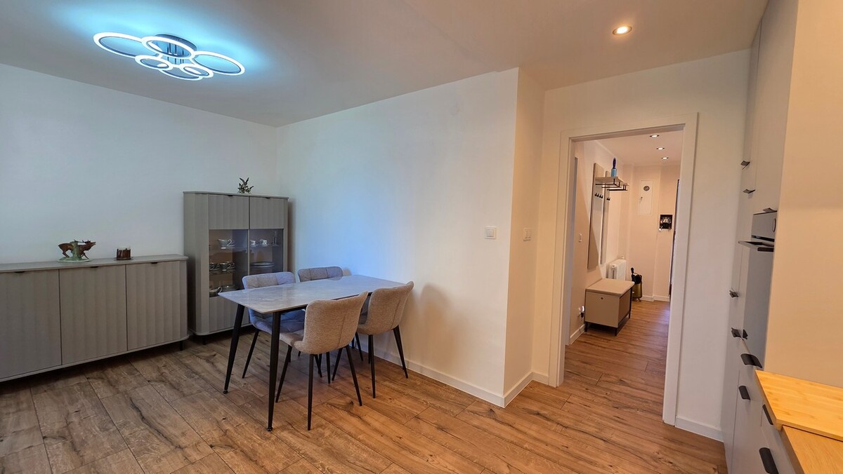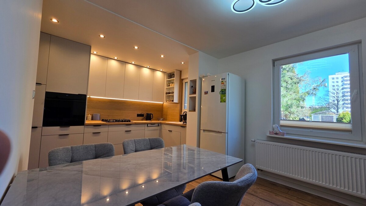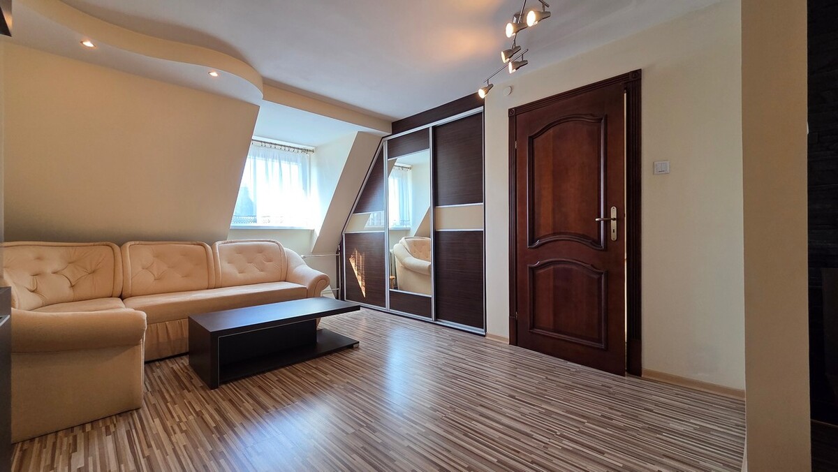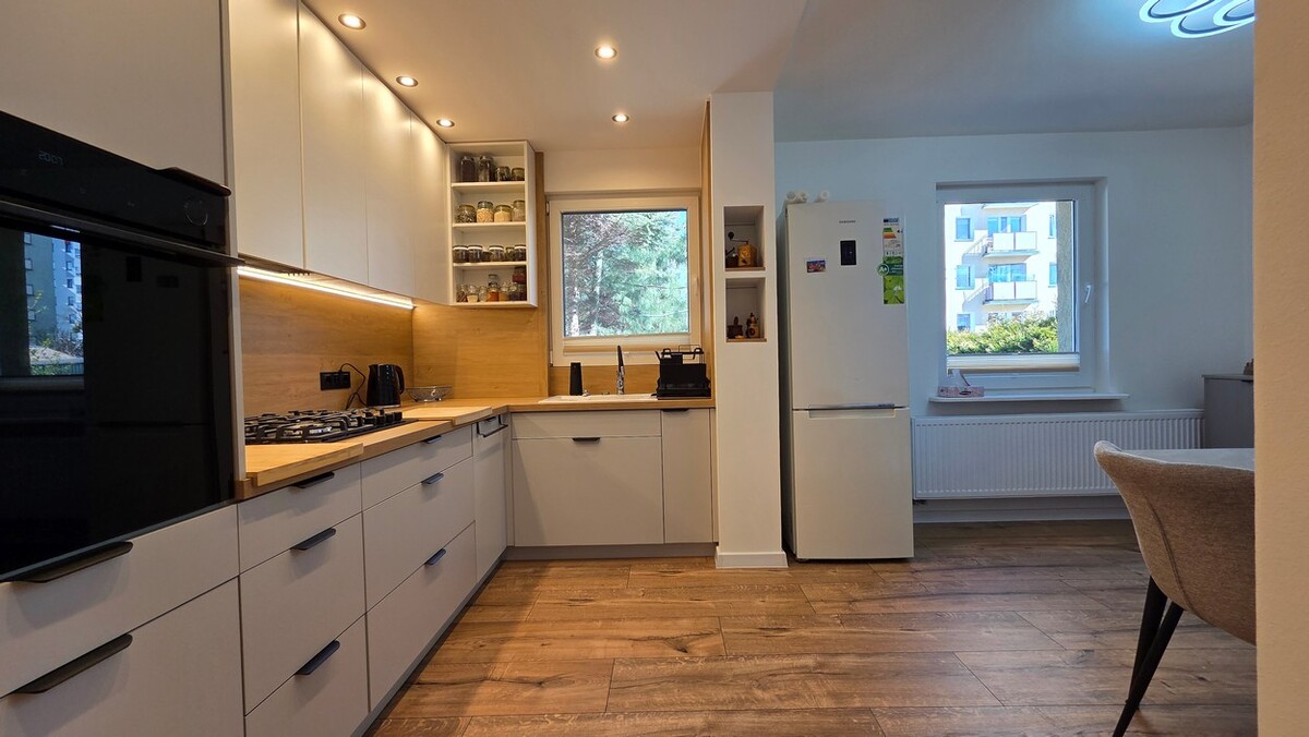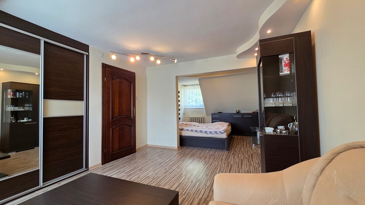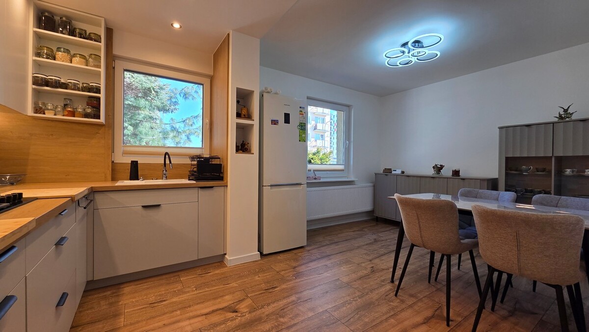 To mieszkanie wyróżnia się przyjemną, ciepłą atmosferą i niepowtarzalnym charakterem. Zamiast standardowego, bezosobowego układu znajdziesz tu przestrzeń, która dobrze sprawdza się na co dzień.Centralnym punktem jest jasny salon, który naturalnie łączy funkcję wypoczynkową i jadalnianą. To właśnie tutaj koncentruje się codzienne życie – zarówno w spokojnym rytmie dnia, jak i podczas spotkań.