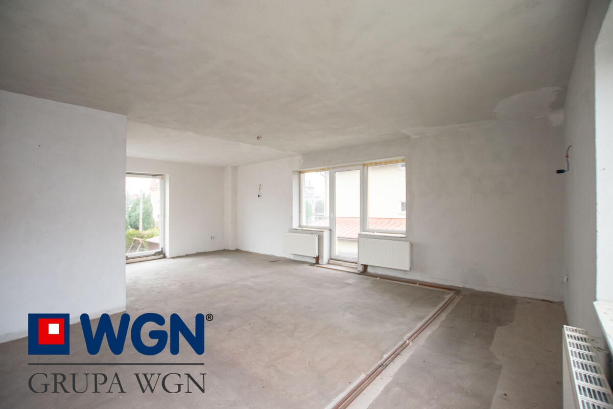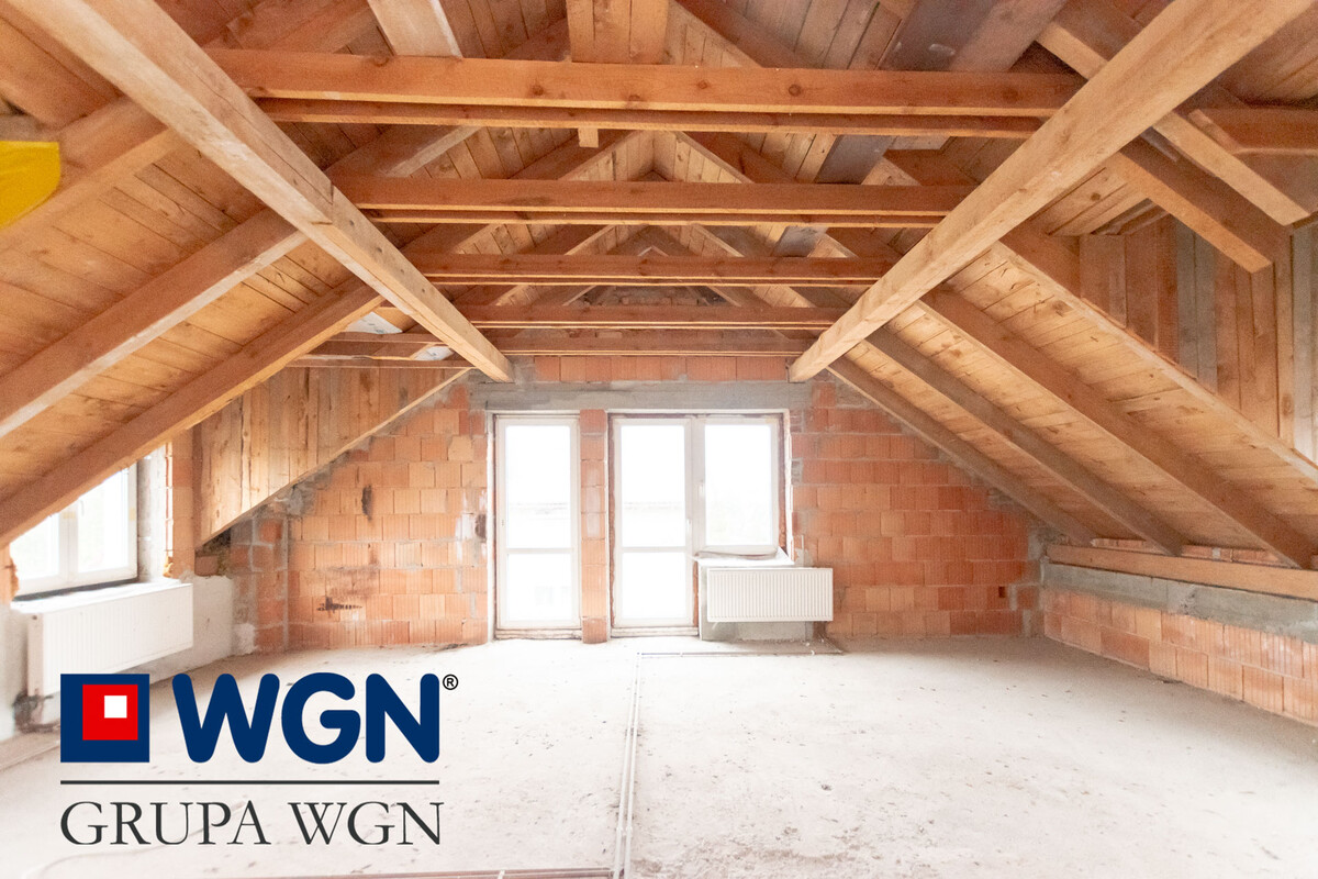 Część usługowa o powierzchni 39,2m2 to sala sprzedażowa, pomieszczenie magazynowe i WC. Dodatkowo garaż o powierzchni 17,4m2 i kotłownia. Nieruchomość do zagospodarowania pod własne potrzeby, z wielkim potencjałem inwestycyjnym. Aktualnie na poddaszu znajdują się otwarta przestrzeń do podziału na 3 pokoje sypialniane i garderobę.