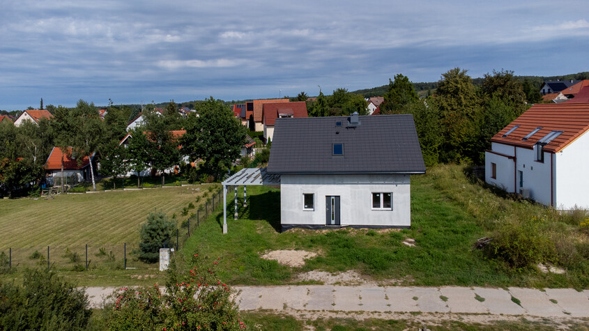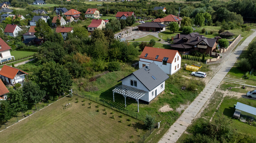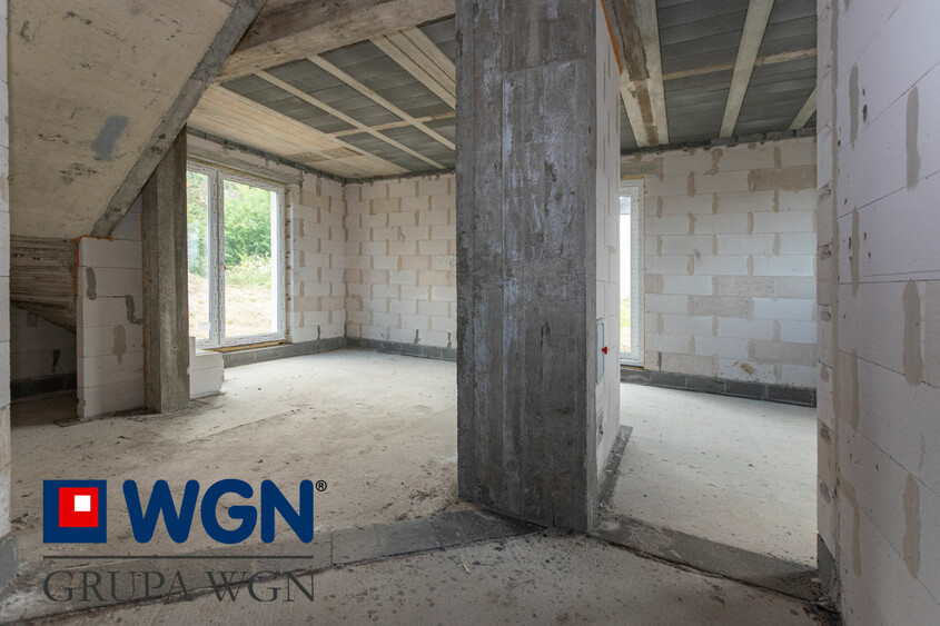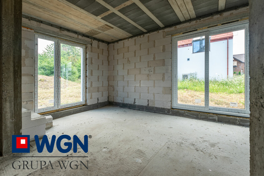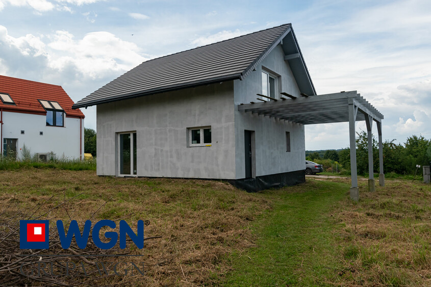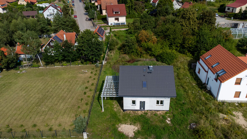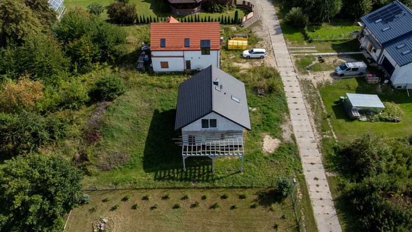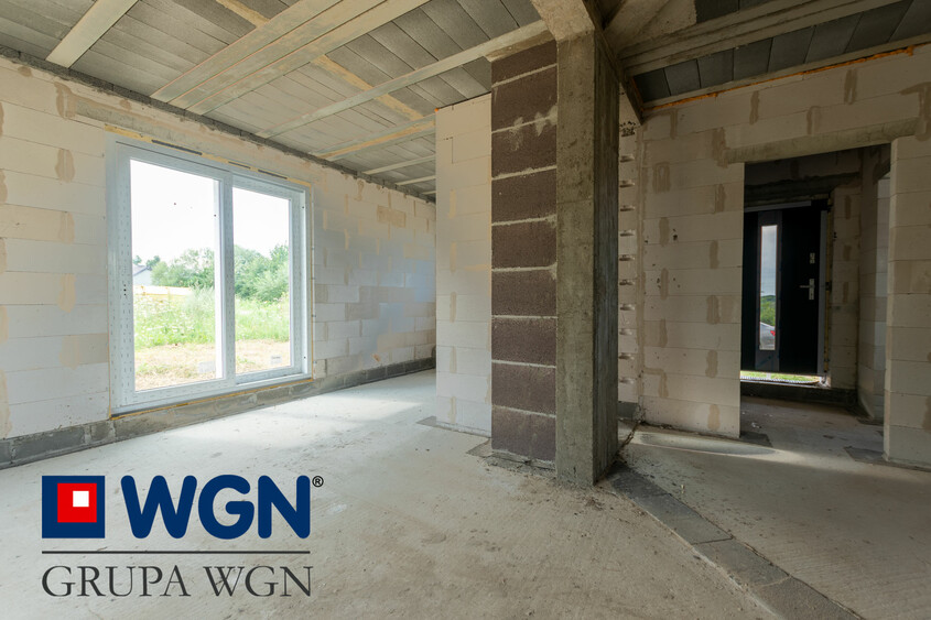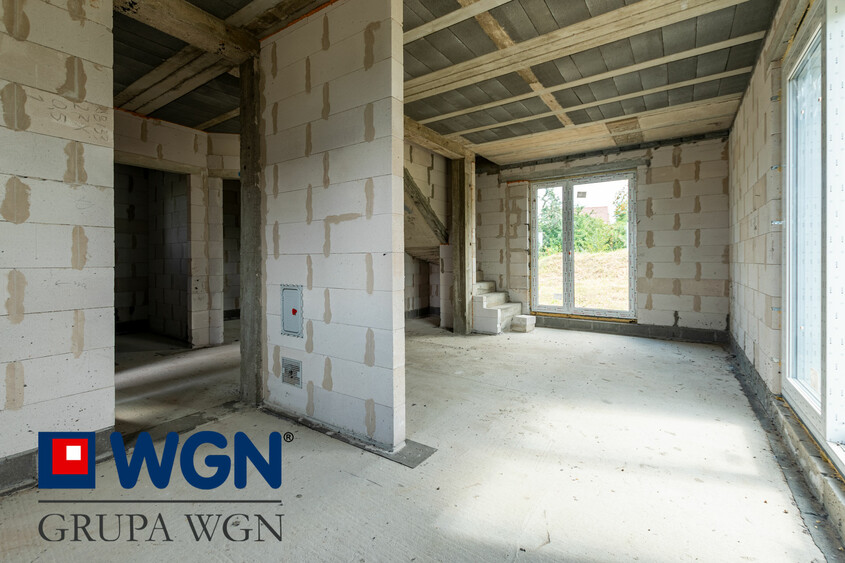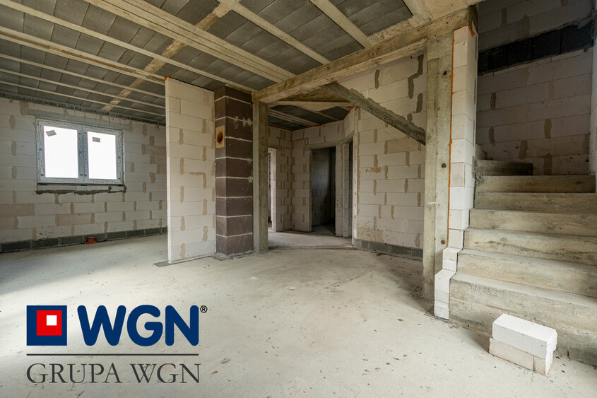 Dom w stanie surowym zamkniętym, budowa rozpoczęta w 2021 roku – bez instalacji elektrycznych i hydraulicznych w środku budynku. Działka numer 368/20 o powierzchni 602m2, na osiedlu domków jednorodzinnych.