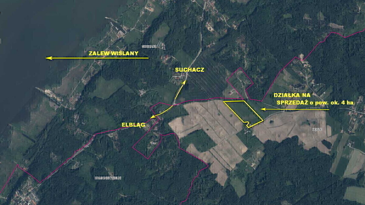 Na sprzedaż działka o powierzchni 4 ha, zlokalizowana w cichej i spokojnej miejscowości Łęcze, gm. Tolkmicko.