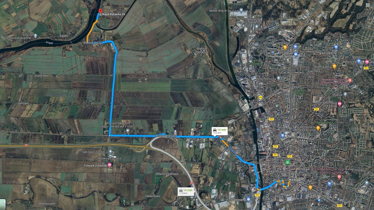 Bardzo dobry dojazd do Elbląga około 15 min samochodem.