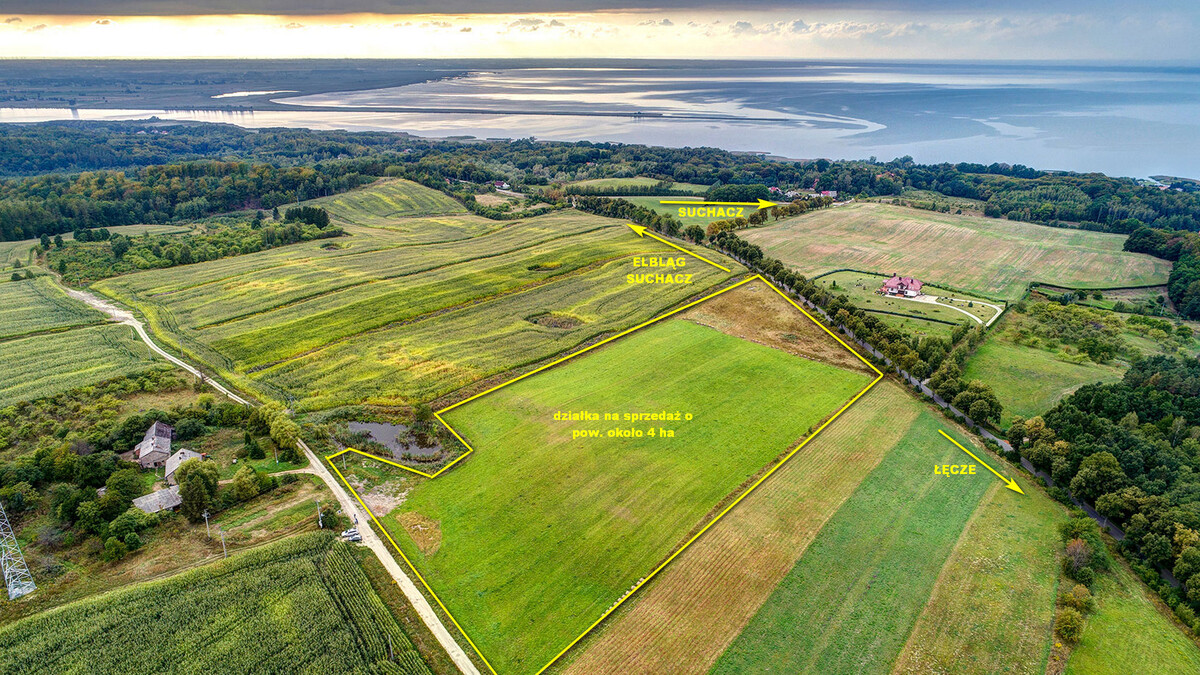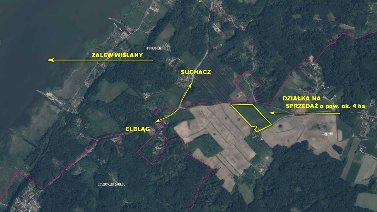 Na sprzedaż działka o powierzchni 4 ha, zlokalizowana w cichej i spokojnej miejscowości Łęcze, gm. Tolkmicko.