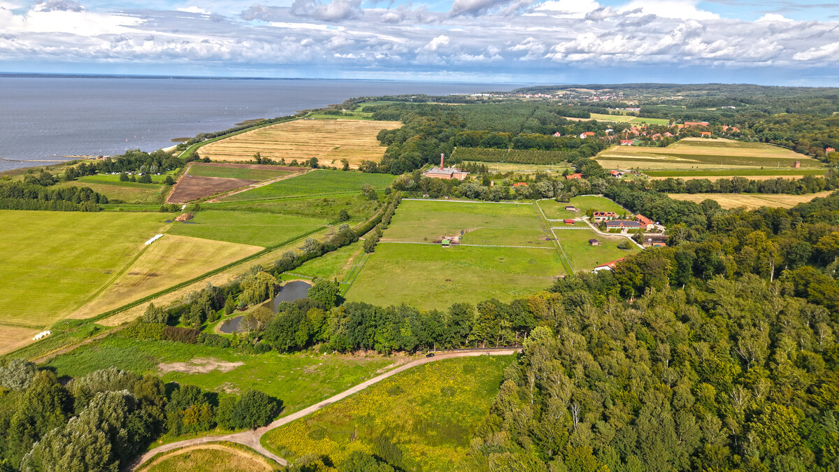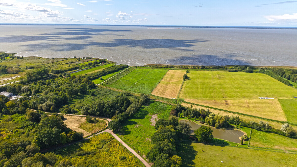 Działka jest bardzo atrakcyjnie położona – za tylną granicą brak możliwości zabudowy, co zapewnia przestrzeń i prywatność. Wzdłuż jednego z boków ciągnie się aleja dorodnych dębów, a w pogodne dni z działki można podziwiać widok na Zalew Wiślany. Do nieruchomości prowadzi utwardzona droga polna. Media dostępne są przy działce (szczegóły widoczne na zdjęciu w ofercie). Właściciel jest w trakcie uzyskiwania warunków zabudowy dla siedliska.