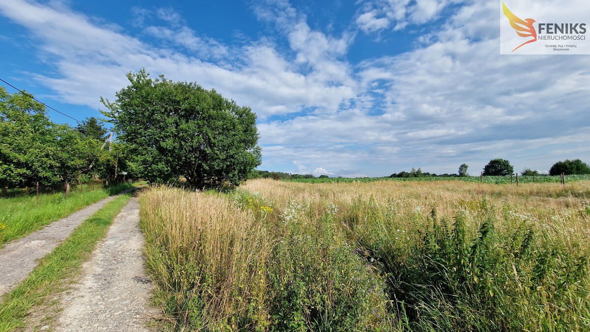 Działka w kształcie romba, umiejscowiona narożnie z możliwością dojazdu z dwóch stron. Położenie to daje większe możliwości umieszczenie budynku w terenie. W chwili obecnej działka nie jest wyrównana i nie jest przygotowana pod budowę. W związku z występowaniem po sąsiedzku pól uprawnych zaleca się przeprowadzenie drenażu działki w celu odprowadzenia wód opadowych. W drodze działki znajduje się wodociąg oraz prąd.