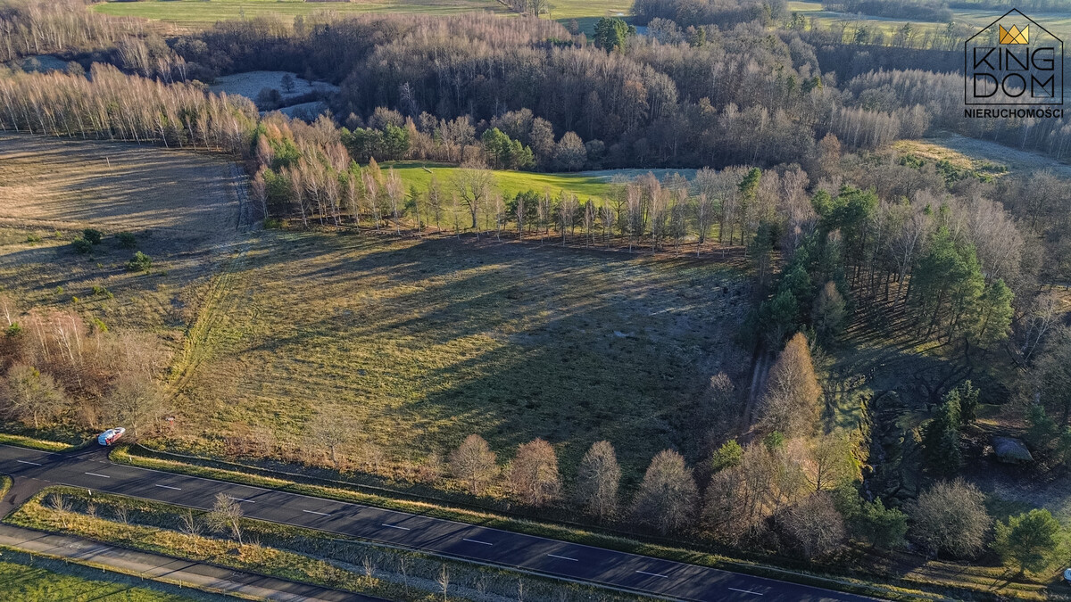 Prezentowane w ogłoszeniu zdjęcia z drona przedstawiają całą nieruchomośc o łącznej powierzchni 11.601 m2, co pozwala w pełni zobaczyć jej kształt, potencjał zagospodarowania oraz otaczającą ją przestrzeń.
