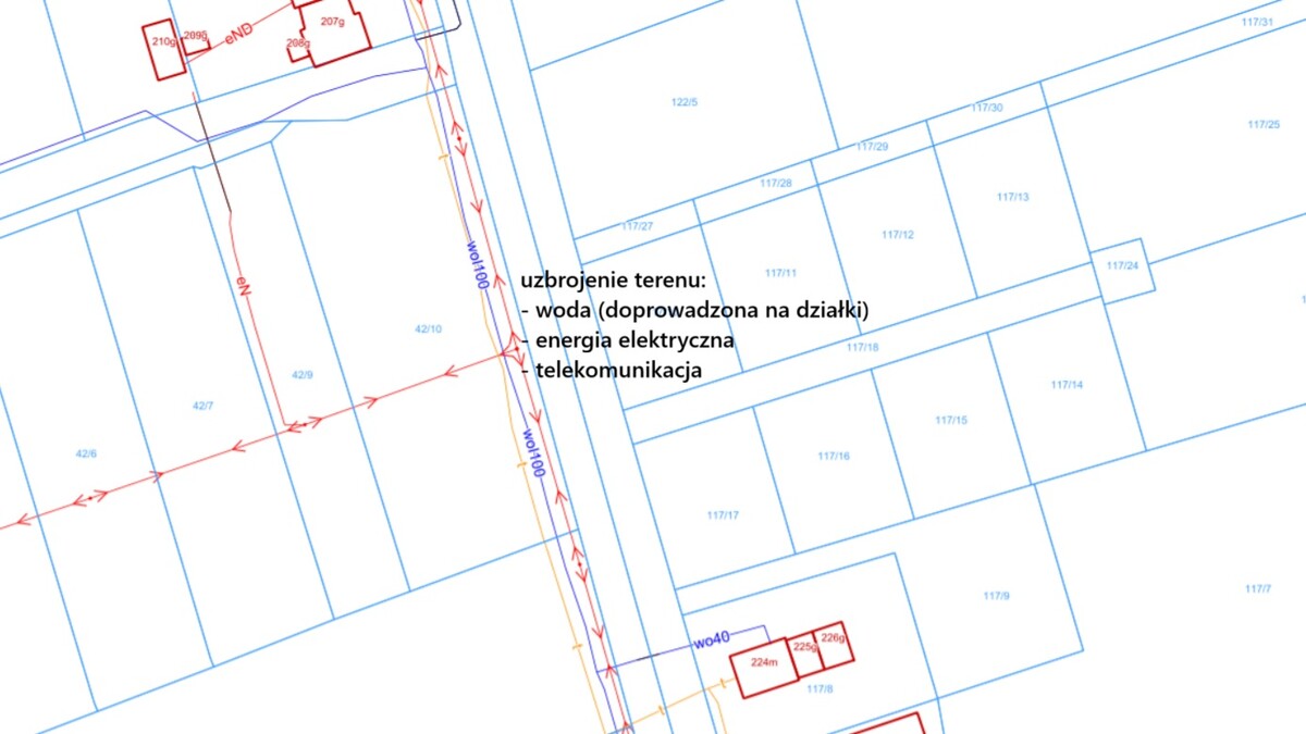 - Udział w drodze wewnętrznej i media – woda już doprowadzona