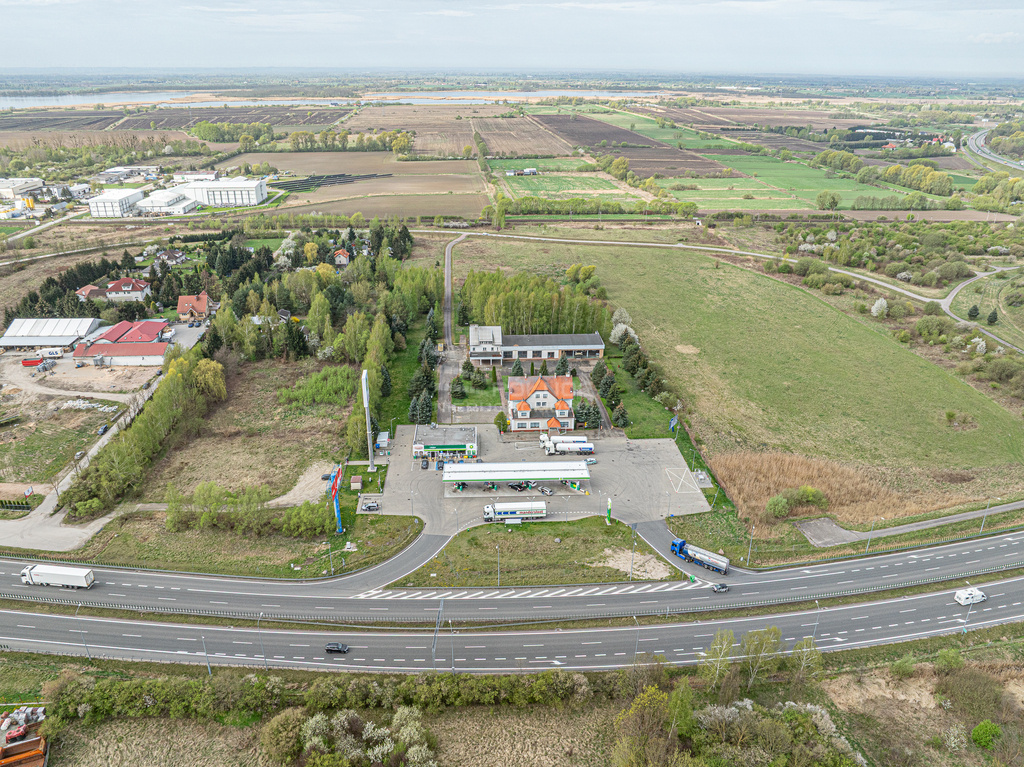 Wjazd bezpośredni z drogi ekspresowej przez grunt stacji paliw i wyjazd również bezpośredni na S7.Grunt obecnie zabudowany obiektem hotelowo restauracyjnym, mieszkalnym i halą. PRZEZNACZENIE W MIEJSCOWYM PLANIE: Funkcja terenu: teren przeznaczony pod funkcję obsługi podróżnych; a) podstawowa: obiekty służące do obsługi podróżnych takie, jak: stacja paliw, obiekty handlowe, motele, gastronomia, usługi naprawcze, itp. b) uzupełniająca: podjazdy, infrastruktura techniczna, mała architektura, zieleń, udział powierzchni biologicznie czynnej w stosunku do powierzchni działki min. 15%; w tym udział zieleni wysokiej min. 20 %, z czego min.10% zieleni zimozielonej, wskaźnik intensywności zabudowy 0,05 ÷ 1,00. Budynki usługowe wysokość 8,5 m, 2 kondygnacje nadziemne, budynki hotelowe - wysokość 12,5 m, 3 kondygnacje nadziemne oraz podpiwniczenie - teren w tym przeznaczeniu obejmuje powierzchnię około 1,1260 ha.Funkcja terenu: teren zabudowy produkcyjno – usługowej; produkcja, przemysł o ograniczonej uciążliwości, a także magazyny i składy oraz usługi. Dopuszcza się funkcję mieszkaniową dla właściciela, bądź zarządcy nieruchomości, realizowaną w formie mieszkania w budynku głównym lub budynku wolnostojącym z zachowaniem linii zabudowy obowiązującej dla budynków mieszkalnych od drogi szybkiego ruchu S7. Dla budynków usługowych i przemysłowych maksymalna wysokość wynosi 14,5 m, 3 kondygnacje nadziemne - teren w tym przeznaczeniu obejmuje powierzchnię około 1,4320 ha. MEDIA: Prąd, woda, gaz. DLACZEGO WARTO? Doskonała widoczność i dostępność komunikacyjna – idealne miejsce na restaurację np. McDonald's, hotel, zajazd, centrum obsługi podróżnych.
