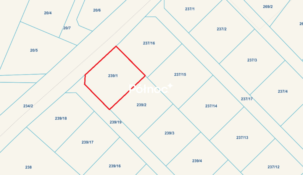 Oferowana działka ma numer ewidencyjny 239/1 i powierzchnię 869 m².