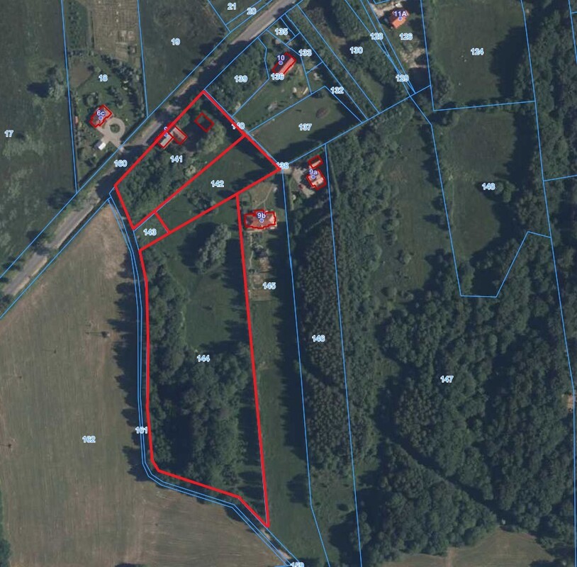 Działka nr 141 o powierzchni 4900 m2 składa się wyłącznie z gruntu zabudowanego klasy B-PsIII. Posiada ona wszystkie niezbędne media, takie jak sieć wodociągową, kanalizacyjną (własne szambo), energię elektryczną i łącze telekomunikacyjne. Działka posiada również bezpośredni dostęp do drogi publicznej tj. drogi wojewódzkiej DW504 Elbląg-Braniewo. Na działce znajduje się budynek mieszkalny o powierzchni zabudowy 110 m2. Dodatkowo na tej działce znajduje się budynek gospodarczy o powierzchni zabudowy 138 m2 oraz stodoła o powierzchni 110 m2.