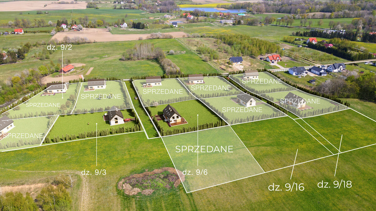 Tu, wśród śpiewu ptaków i szumu drzew, czekają na nowych właścicieli ostatnie cztery działki 9/3,9/6,9/16 i 9/18 ziemia żyzna, szeroka i pełna obietnic.