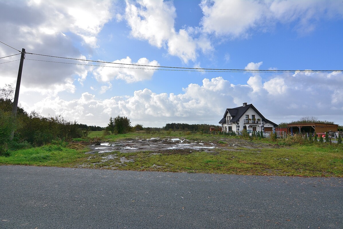 Działka o wydłużonym kształcie prostokąta z dużym potencjałem budowlanym. Sąsiaduje bezpośrednio z taką samą działką, gdyż powstała z podziału jednej działki na dwie równe części. Sąsiednia działka jest zabudowana budynkiem mieszkalnym. Wjazd na działkę bezpośrednio z drogi asfaltowej. Wymiary działki: 27,5 m x 29,4 m x 243,6 m x 236,3 m. Grunty orne klasy IV.