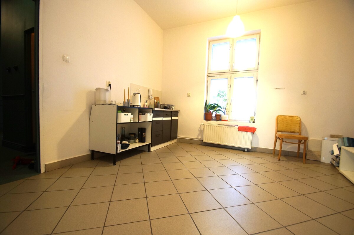 * ok.180,00 m2 - duża sala, zaplecze, pomieszczenie socjalne, dwie toalety, 5 gabinetów, strych.