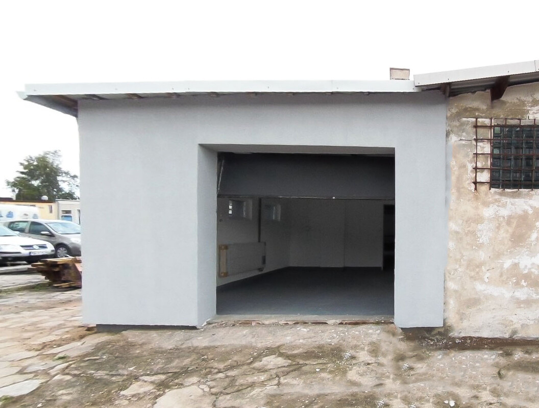 Budynek o łącznej powierzchni 136 m2 obejmuje: przestronne pomieszczenie garażowo-magazynowe z bramą sterowaną pilotem i dostępem do placu manewrowego, dwa pomieszczenia magazynowo-produkcyjne z kolejną bramą garażową, pomieszczenie biurowe, kotłownię, dwa pomieszczenia sanitarne (WC) oraz prysznic. Obiekt jest w bardzo dobrym stanie technicznym i został ocieplony. Wszystkie okna oraz drzwi wejściowe wyposażono w rolety antywłamaniowe. Budynek posiada nowe instalacje: gazową, wodno-kanalizacyjną oraz elektryczną (w tym przyłącze siłowe). Dzięki swojej funkcjonalności i solidnemu wykonaniu obiekt doskonale nadaje się do prowadzenia działalności handlowej, magazynowej, hurtowej lub drobnej produkcji.