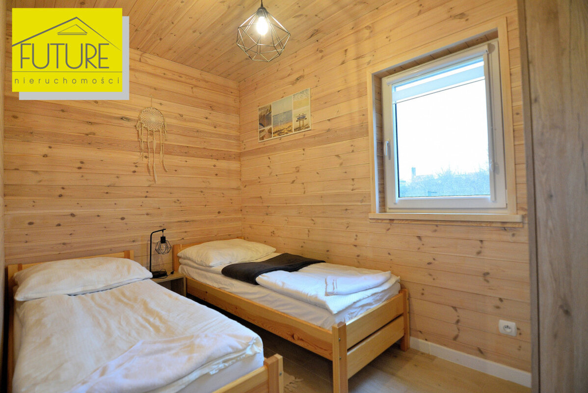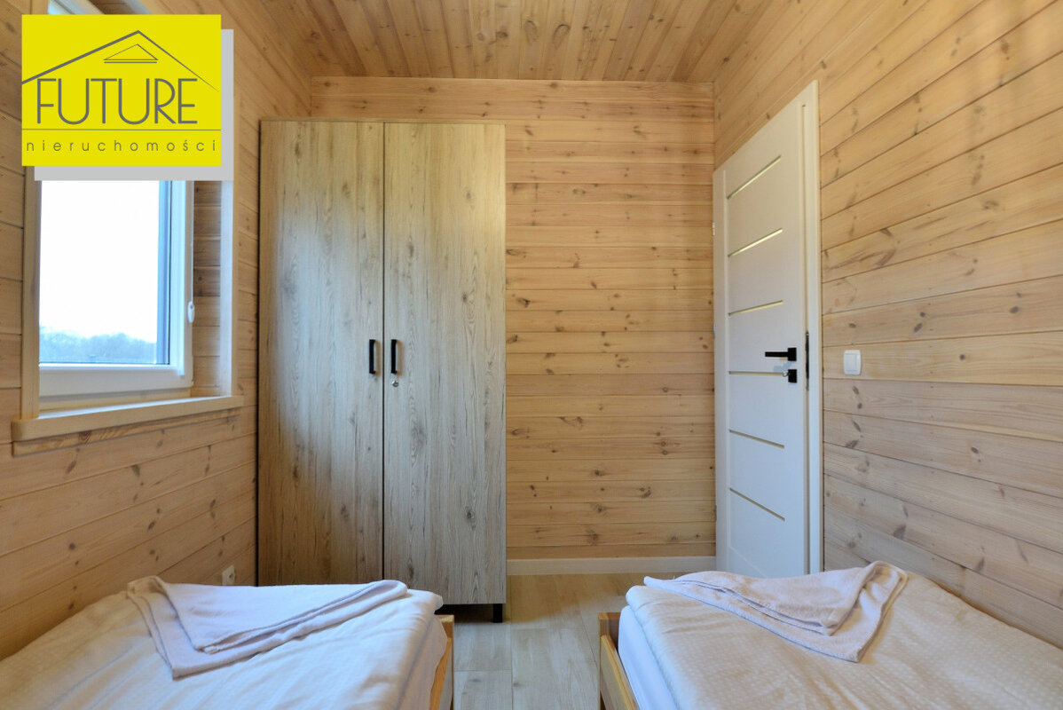 Domki z 2023 roku, każdy o powierzchni użytkowej 30,56 m² ( po podłodze 47,6 m²) i tarasu o powierzchni 9,9 m².