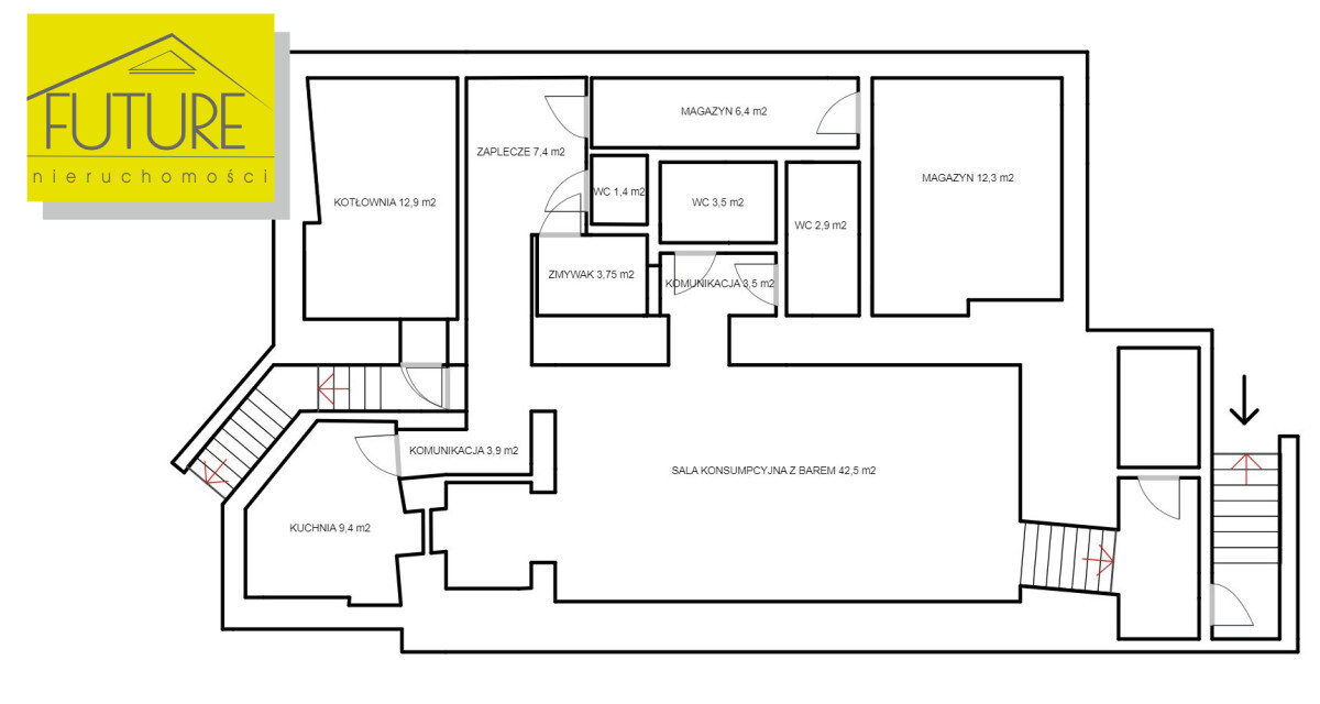Lokal z bezpośrednim wejściem z chodnika, położony w przyziemiu.