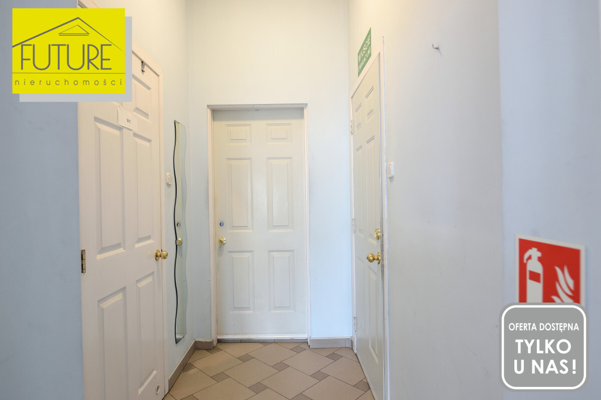 Lokal składa się z głównej sali wykorzystywanej na biuro z dużą ilością okien od strony ulicy, drugiego pomieszczenia podzielonego na aneks kuchenny i część biurową, przedpokoju oraz łazienki.