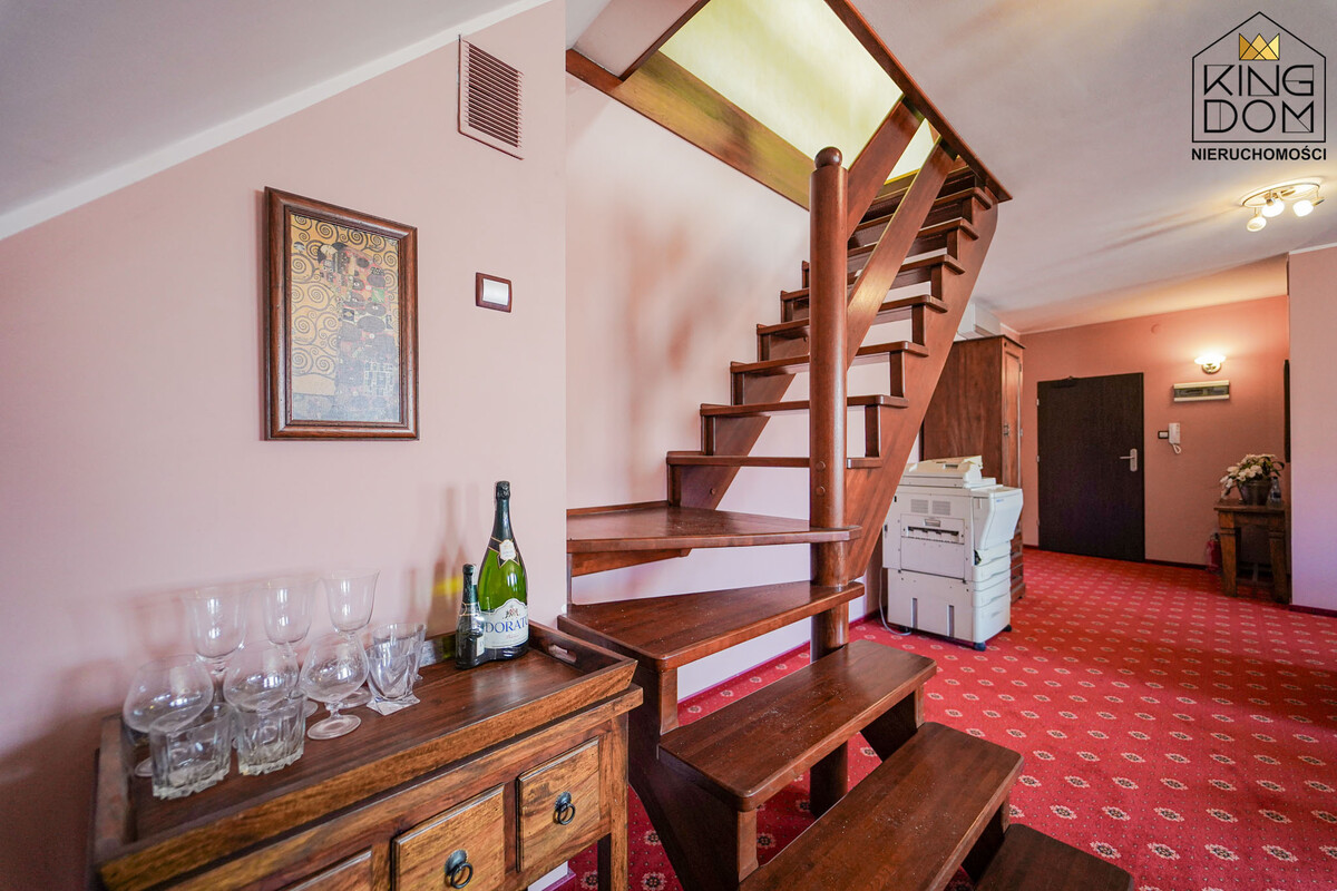 Dodatkowym atutem jest zaadaptowane poddasze, klimatyczne pomieszczenie idealne na dodatkowy gabinet, zaplecze socjalne, pokój spotkań lub pracownię. Łączna powierzchnia użytkowa lokalu po uwzględnieniu poddasza wynosi około 70 m2.