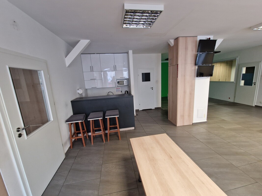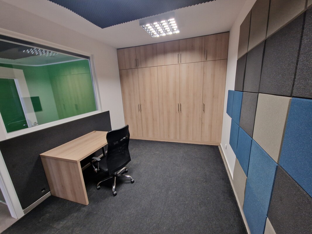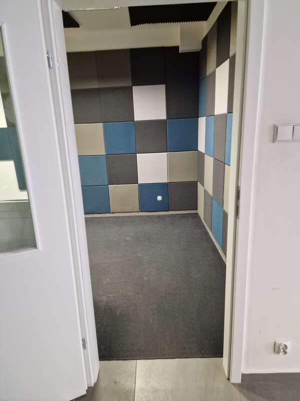 - Obecny Układ: Aktualnie podzielony na strefę recepcyjną, przestronny open space, profesjonalne studio green screen (ok.19,4 m²), wyciszone studio lektorskie/podcastowe, salę konferencyjną oraz zaplecze socjalne (aneks kuchenny, toaleta).