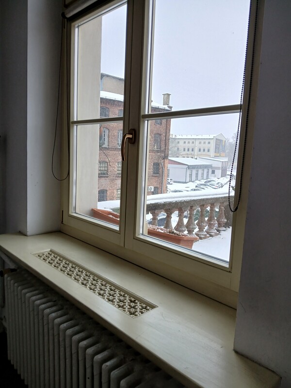 - wyjście na niewielki taras z widokiem na jedną z głównych ulic miasta