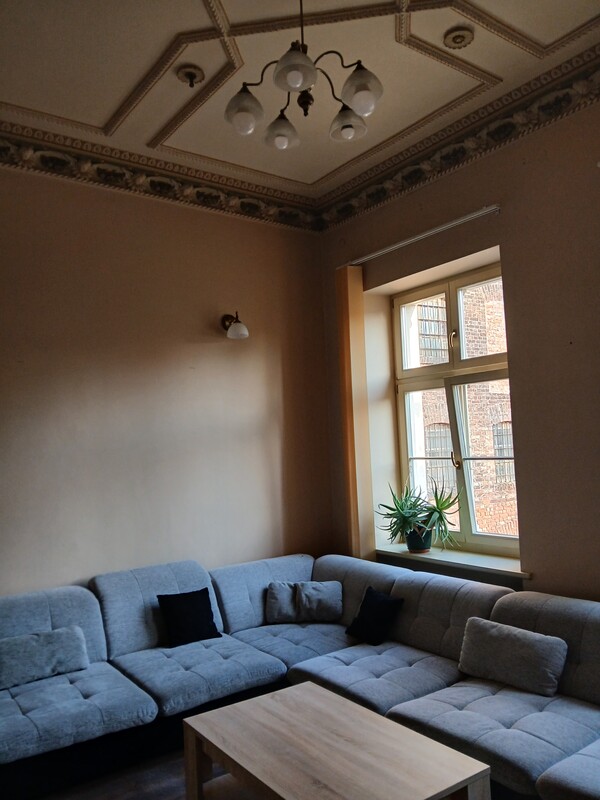 - ustawne, wysokie pomieszczenie z oknami w dwóch kierunkach