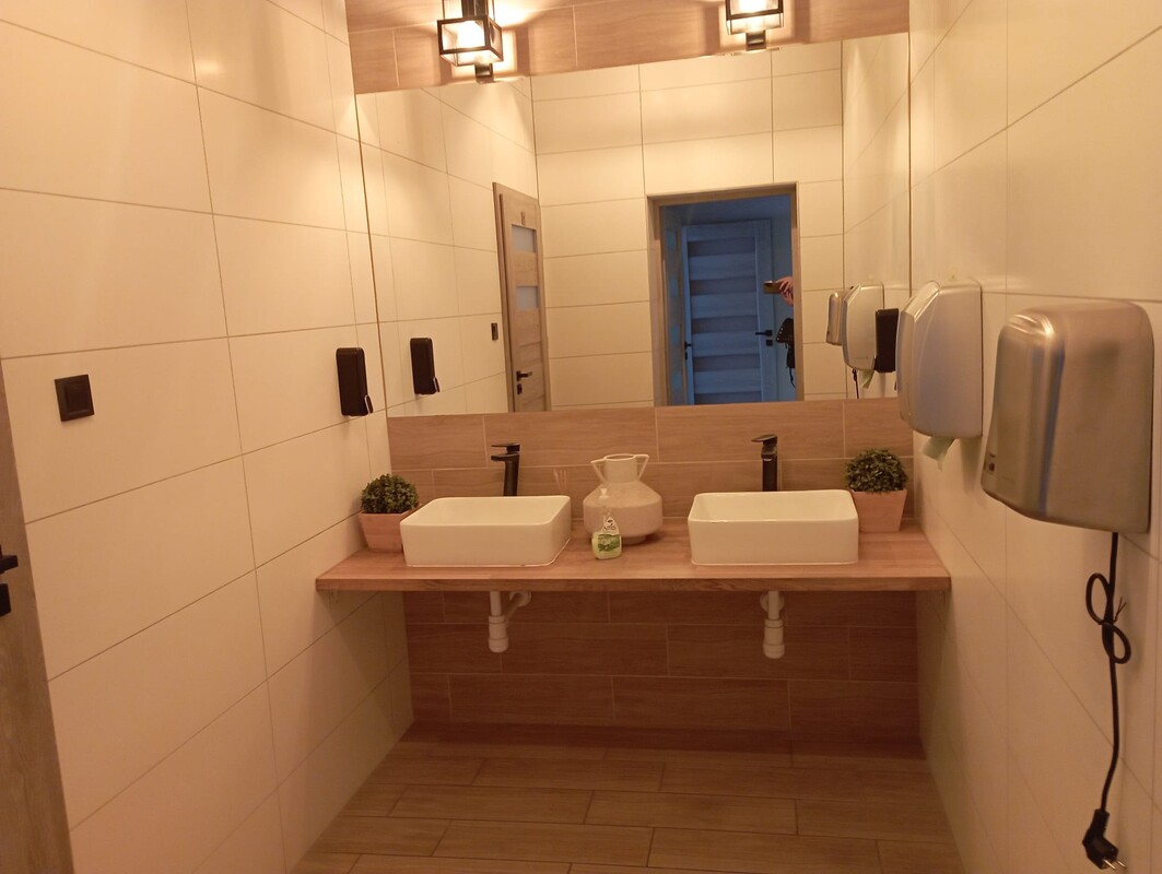 Zaplecze socjalne – w łazience prysznic, kuchnia, klimatyzacja w pomieszczeniach.
